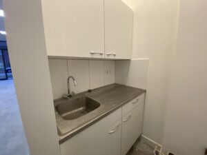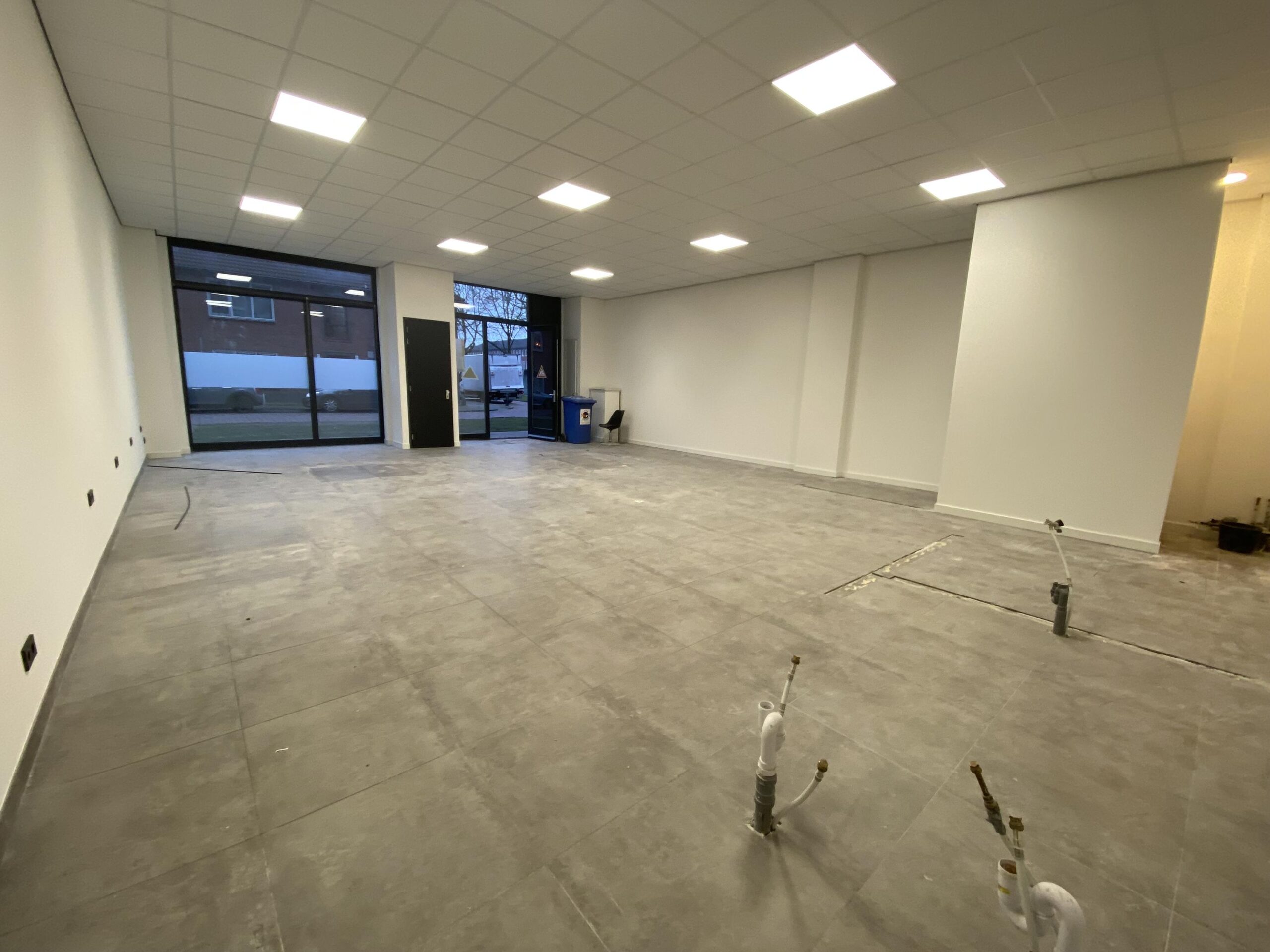 Er zijn aansluitpunten voor water in de ruimte, voor bijvoorbeeld een kapsalon/schoonheidssalon die verwijderd kunnen worden. In verband met de vloerverwarming mag er niet in de vloer geboord worden.