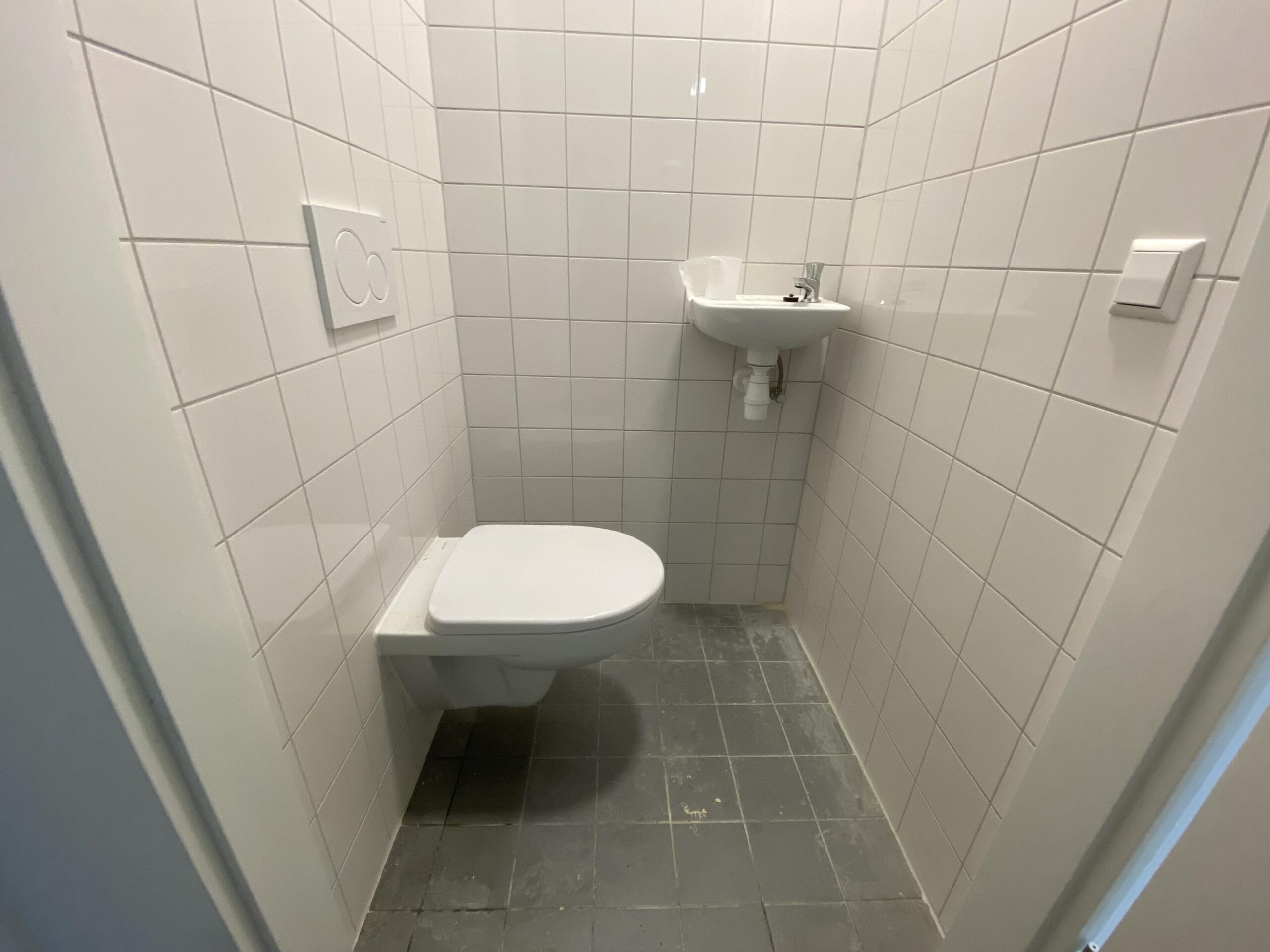 - lichtgrijze tegelvloer voorzien van vloerverwarming;