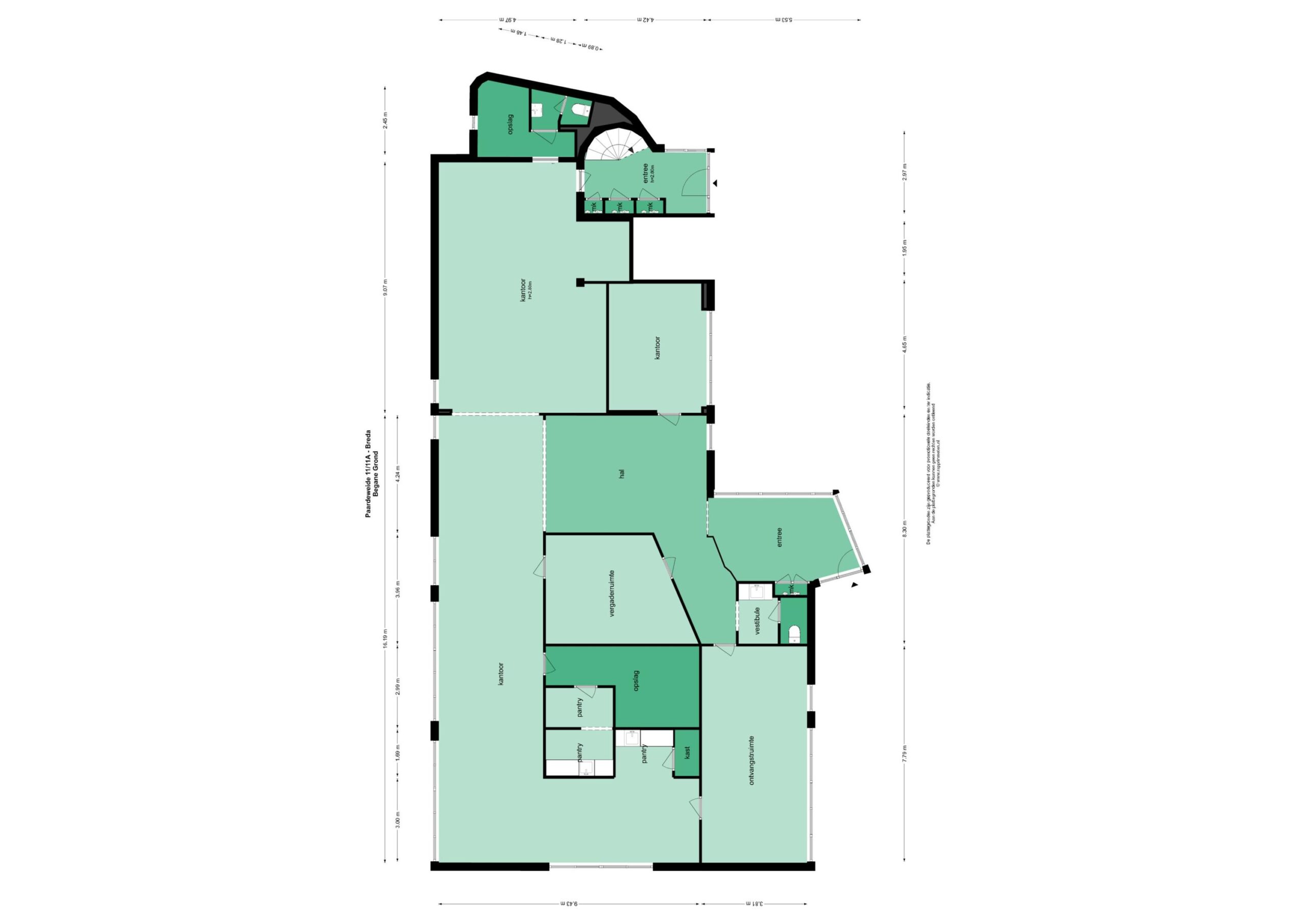 - Kantoorruimte begane grond : circa 282 m²;