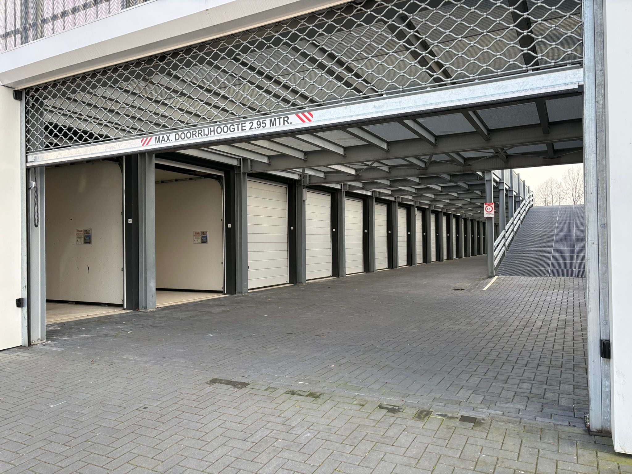 De opslagboxen omvatten ieder 18 m² en zijn gelegen op de begane grond van een complex met garageboxen. De units zijn circa 6 meter* lang, circa 3 meter* breed en circa 3,50 * meter hoog. Daarbij beschikken de opslagboxen over een overheaddeur met een hoogte van 2,97 meter.