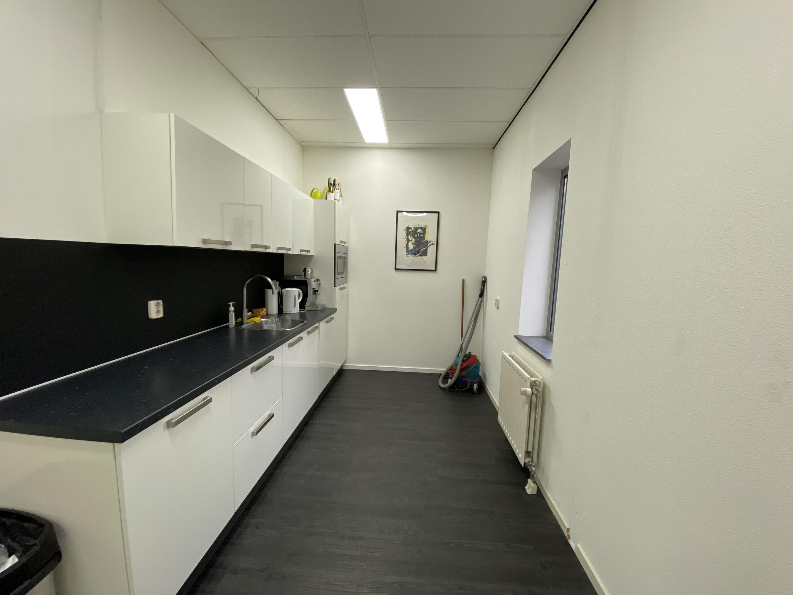 De pantry van de foto betreft een gedeelde pantry. Deze wordt gedeeld met de andere huurder van de kantoorruimte op de verdieping.