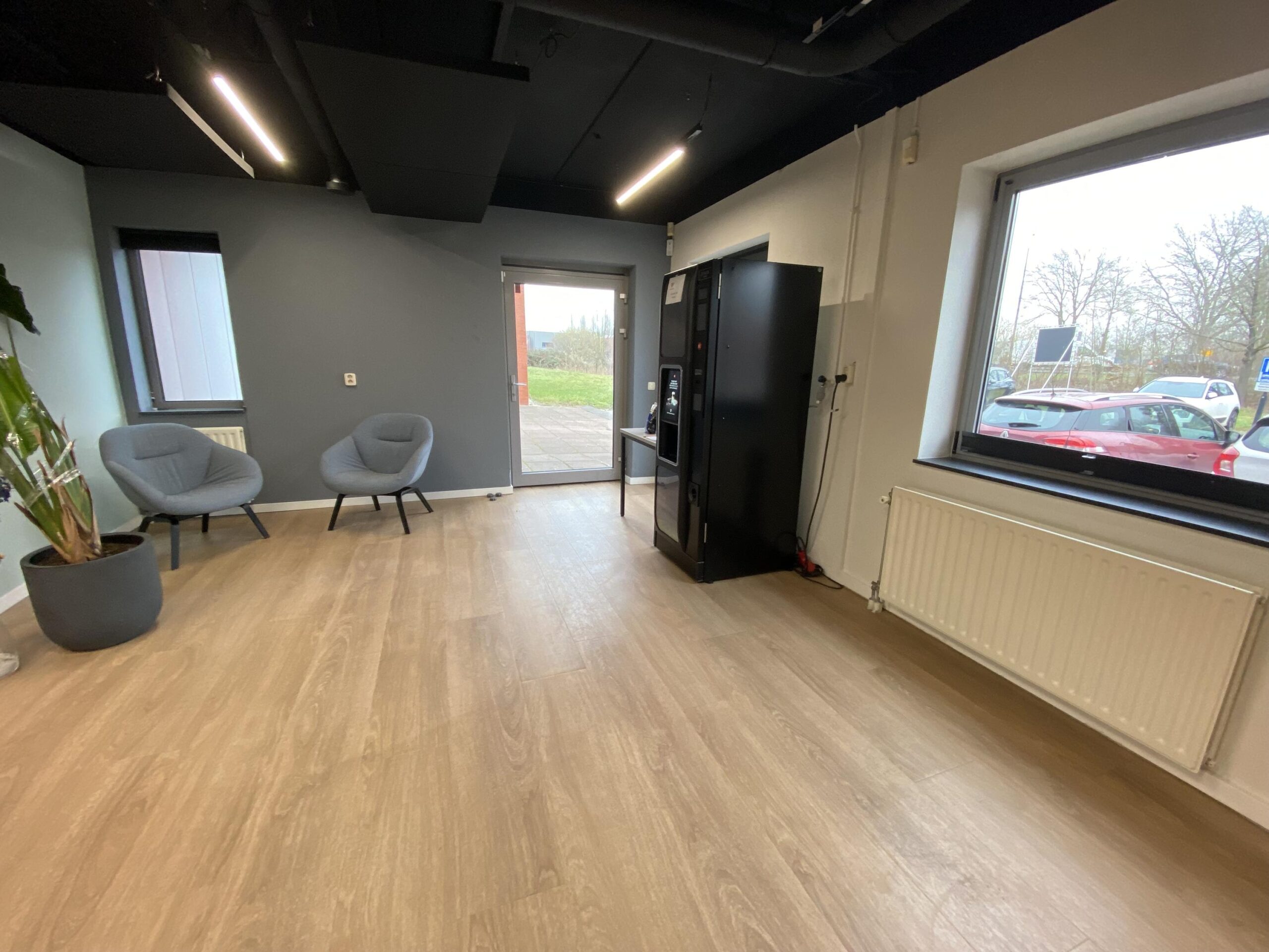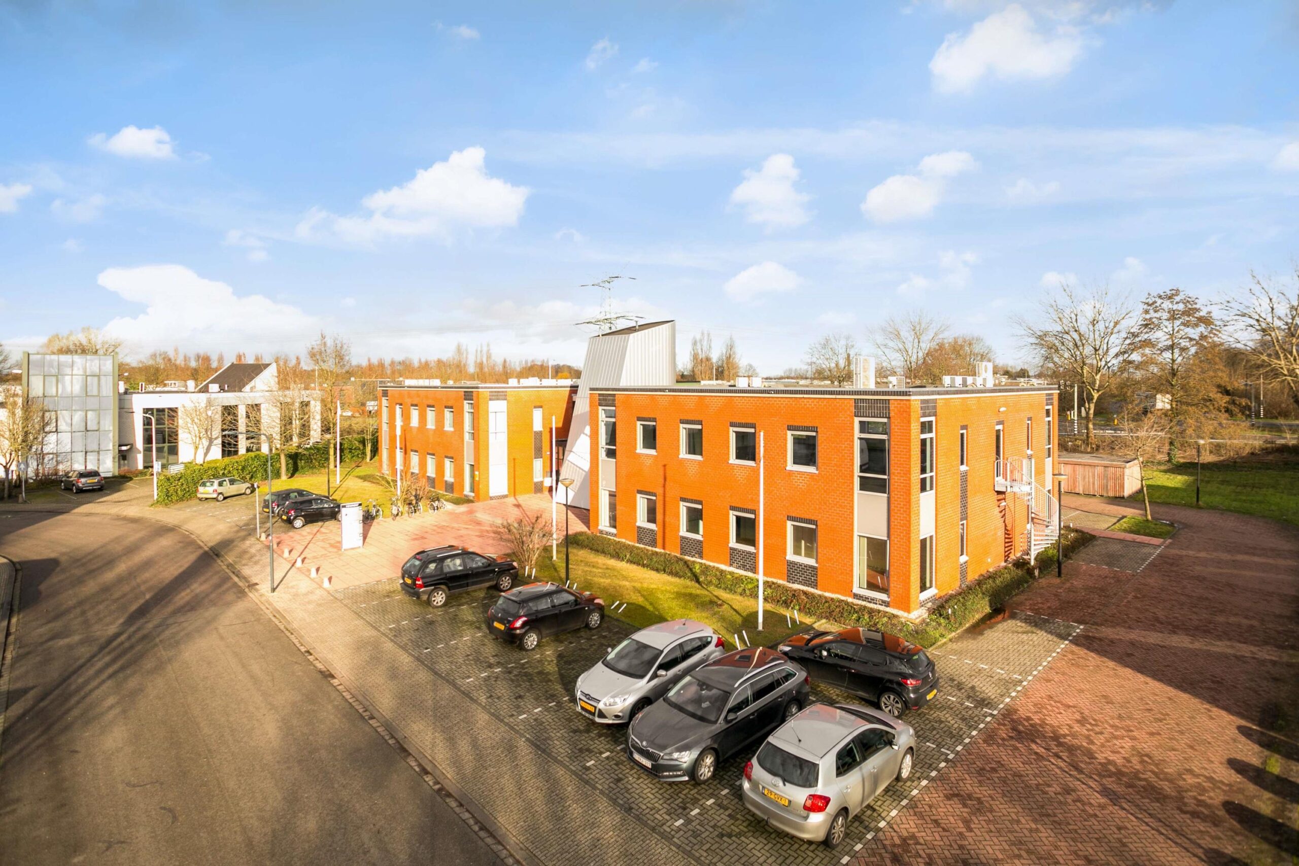 Aan de voorzijde zijn 8 parkeerplaatsen gelegen die bij de huurprijs zijn inbegrepen. Indien er behoefte is aan meer parkeerplaatsen, dan zijn deze voor € 250,-- per jaar exclusief BTW extra bij te huren (op basis van beschikbaarheid) aan de zijkant of aan de achterzijde van het gebouw.