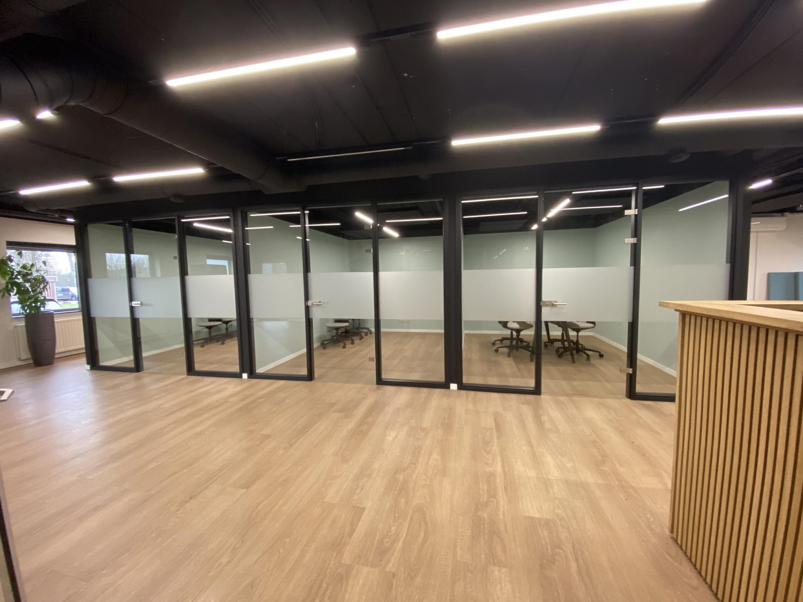 • spreekkamers voorzien van glazen wanden;