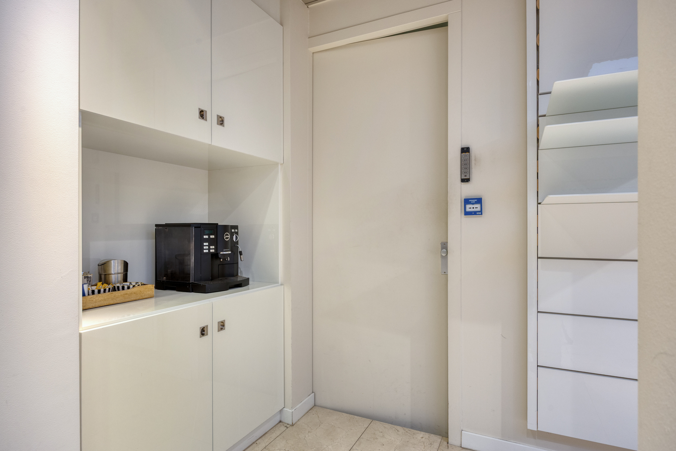- dubbele glazen toegangsdeur met aan weerszijden etalages;