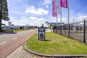 De royale parkeergelegenheid bij het door een hekwerk omheinde bedrijfsobject is gedeeld met MHK Keuken Expert.