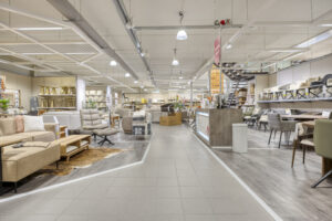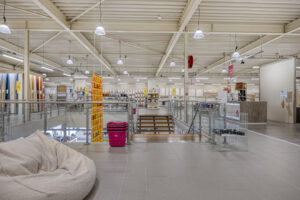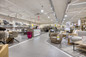 De ruimte aan de achterzijde, waar momenteel Leen Bakker gevestigd is, komt voor verhuur beschikbaar.