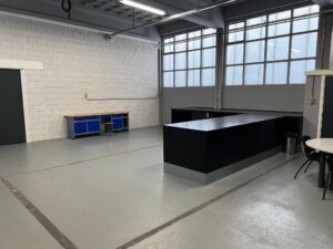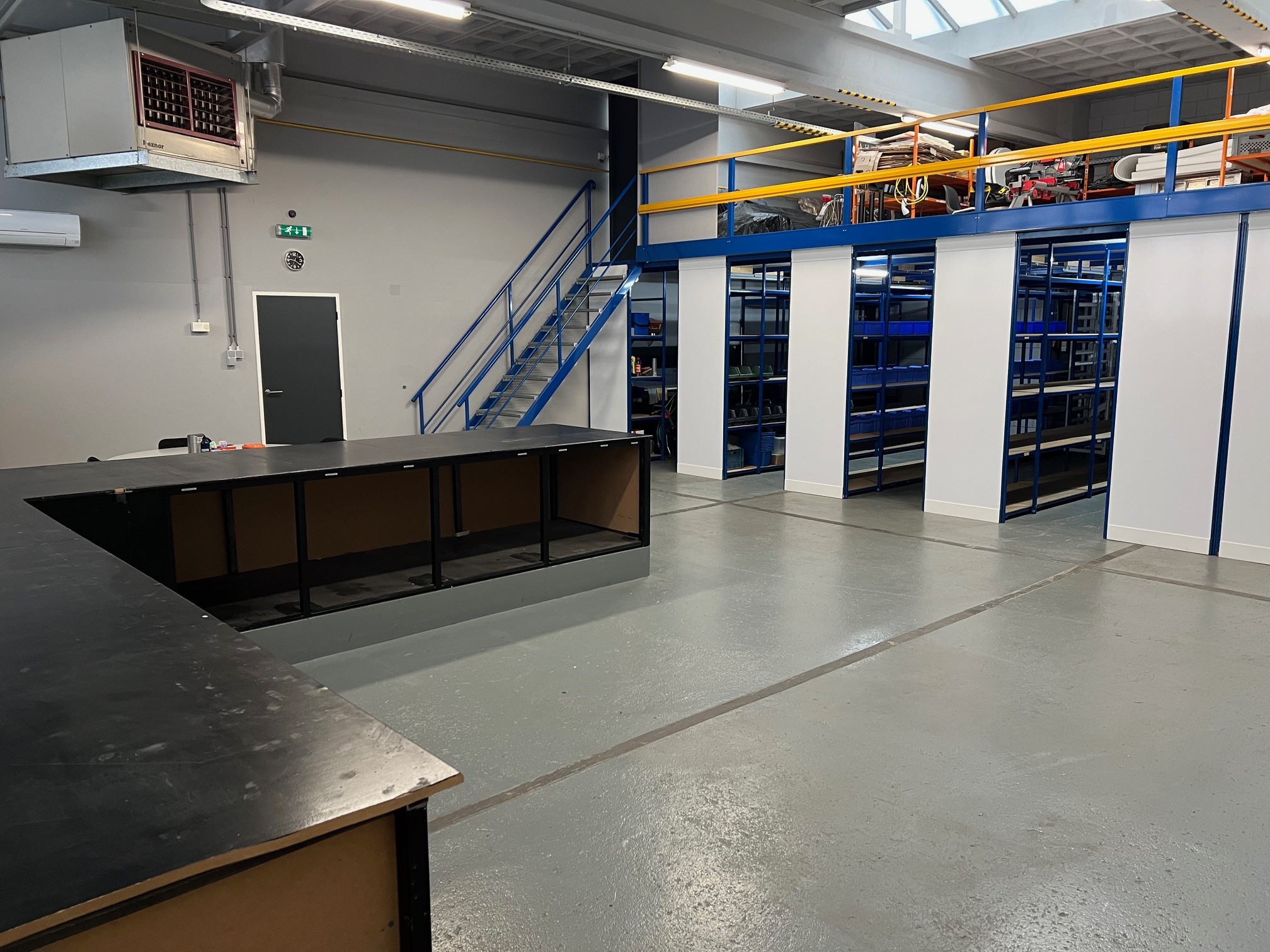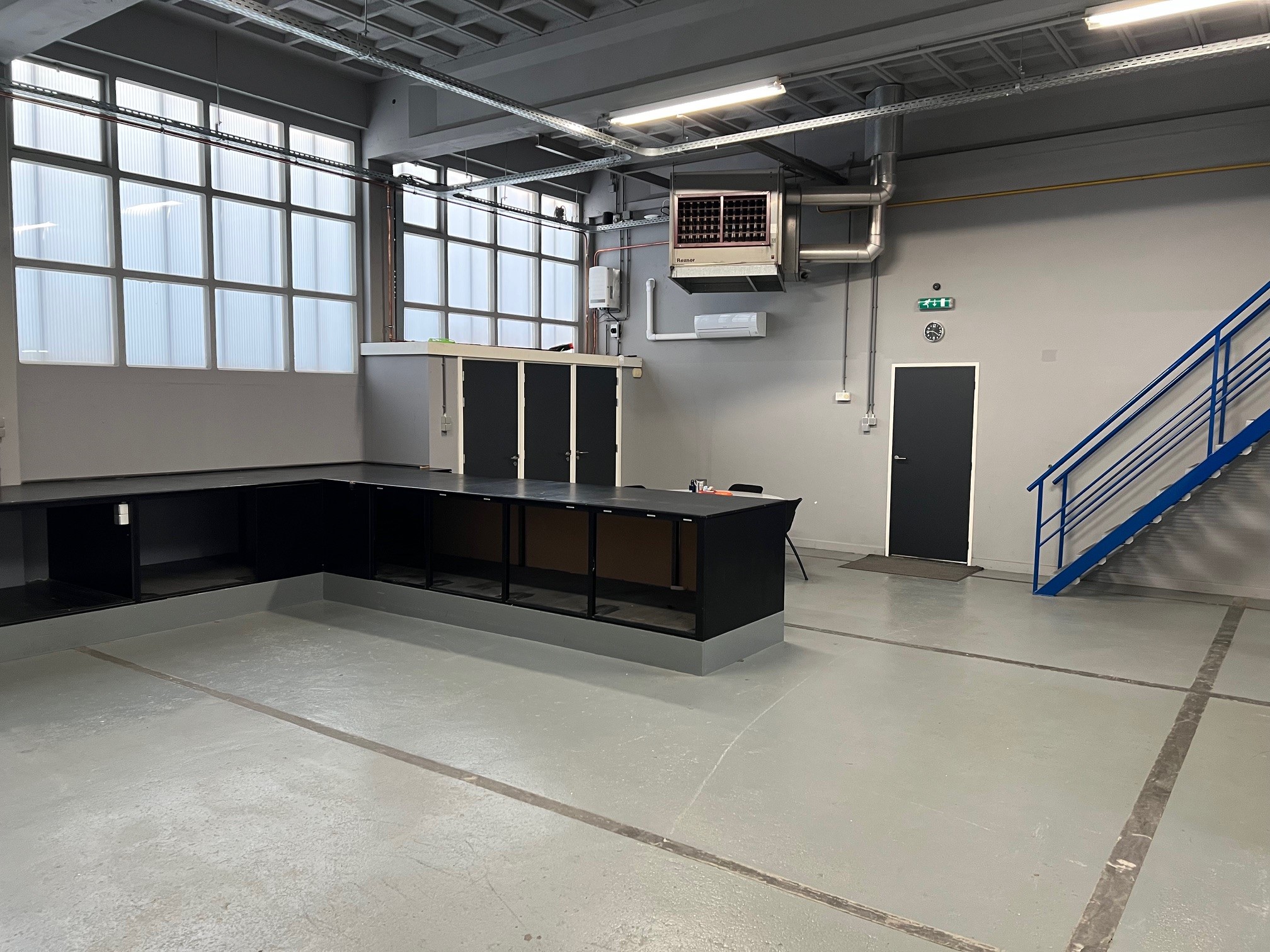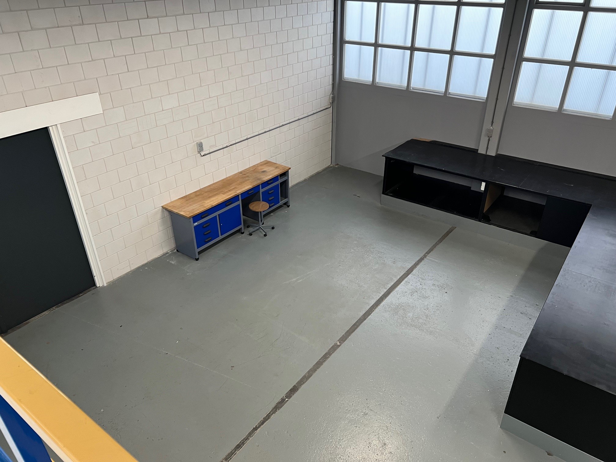 Het bedrijfspand bestaat uit een kantoor aan de voorzijde, met daarachter twee geschakelde bedrijfsruimtes, beide gedeeltelijk voorzien van een entresolvloer en een lichtstraat. Aan de achterzijde van het pand bevindt zich een overheaddeur.