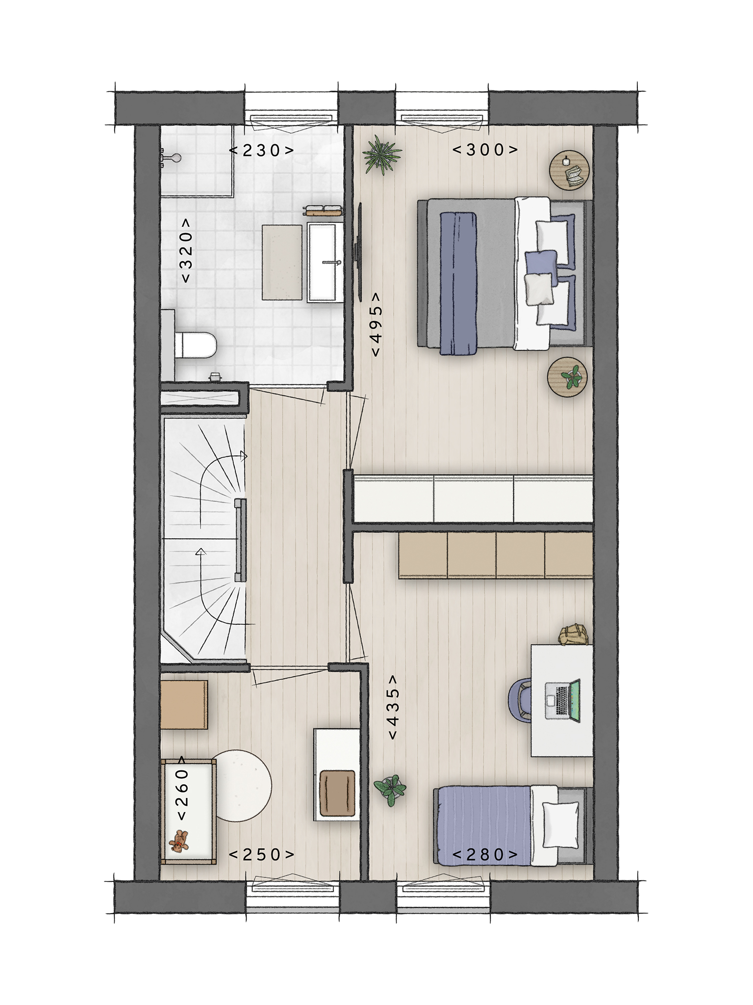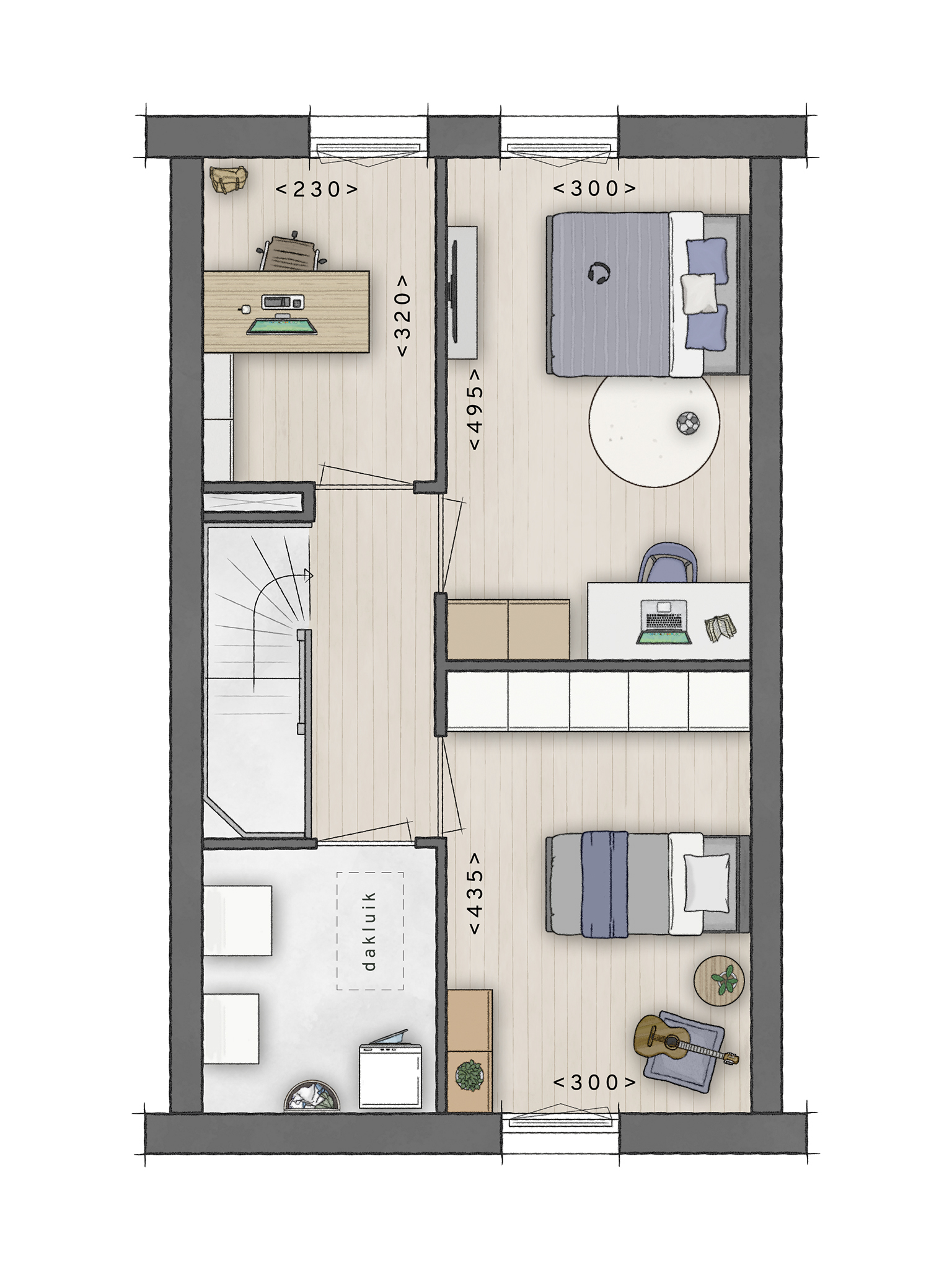 In De Kruidentuin woon je heerlijk groen maar wél met hartje Breda om de hoek. En met een zonnige achtertuin op het zuiden zit je in deze tussenwoning altijd goed: of je nu wil loungen in de luwte of genieten van de zon. Bouwnummer 004 (type Tijm) heeft daarnaast een ruim woonoppervlak, een berging in de achtertuin en maar liefst 6 slaapkamers om te verdelen. Dus, wie slaapt waar?
