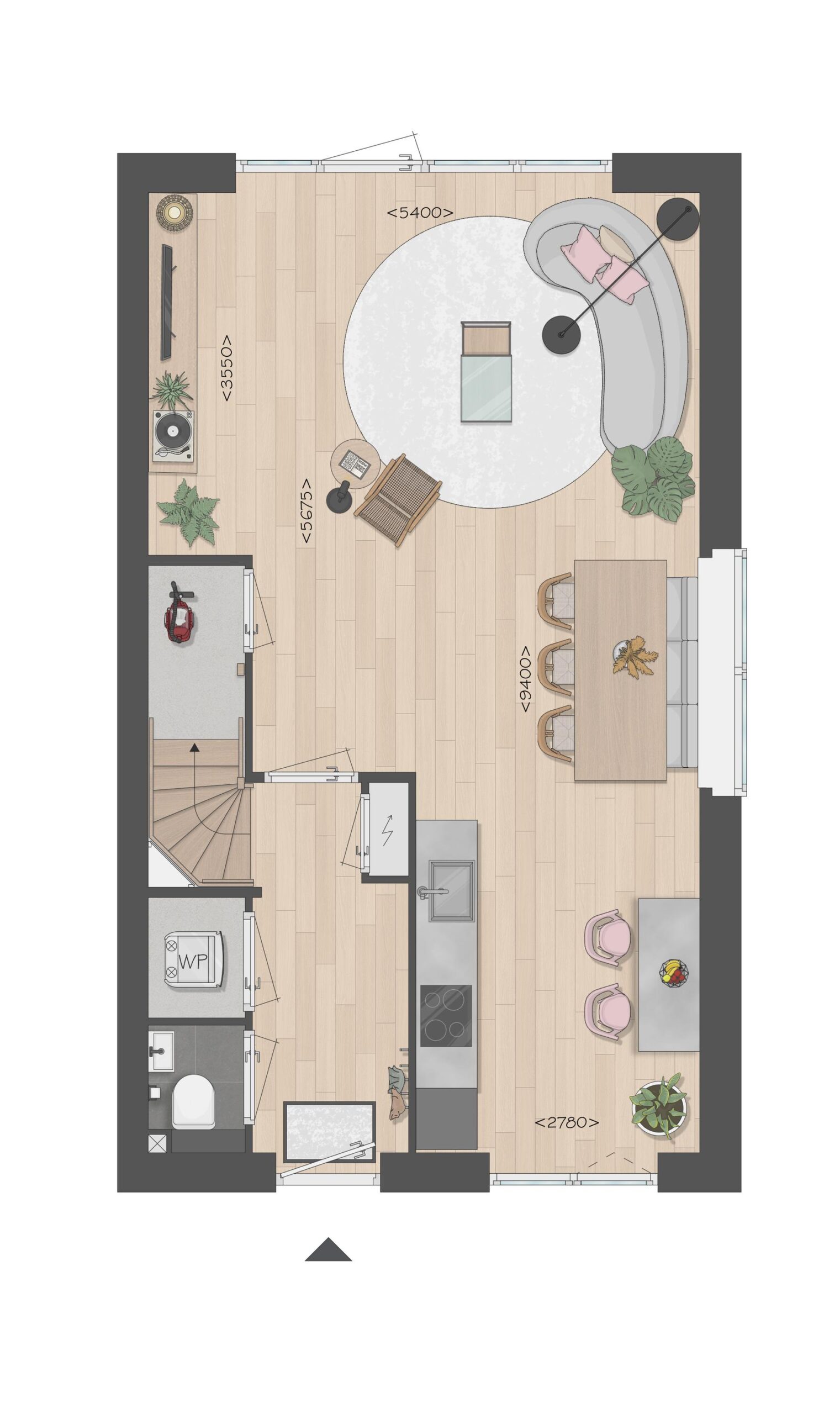 Met de beschikbare opties geef je jouw nieuwe woning eenvoudig een persoonlijke touch. Denk bijvoorbeeld aan een extra ruime woonkamer dankzij een uitbouw van 1,20 of zelfs 2,40 meter aan de achterzijde. Wil je meer verbinding tussen binnen en buiten? Kies dan voor openslaande tuindeuren of een schuifpui.