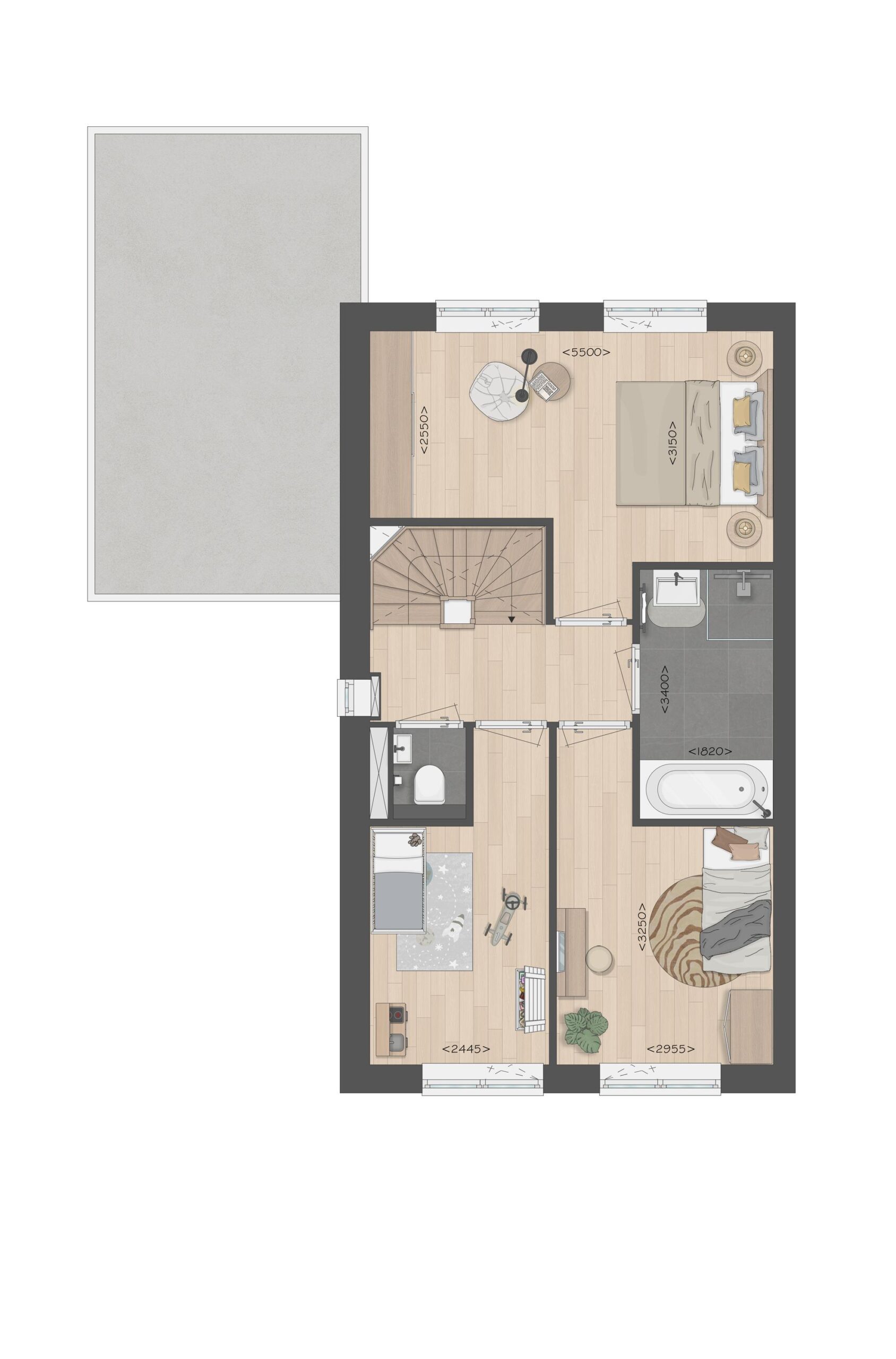 Ook de verdiepingen zijn naar wens in te delen. Op de eerste verdieping kun je de badkamer vergroten voor meer comfort, of twee slaapkamers samenvoegen tot één royale hoofdslaapkamer met bijv. een inloopkast. Op de tweede verdieping richt je met diverse indelingsopties een volwaardige woonlaag in, met bijvoorbeeld twee extra slaapkamers, een tweede badkamer en een praktische was-/bergruimte.