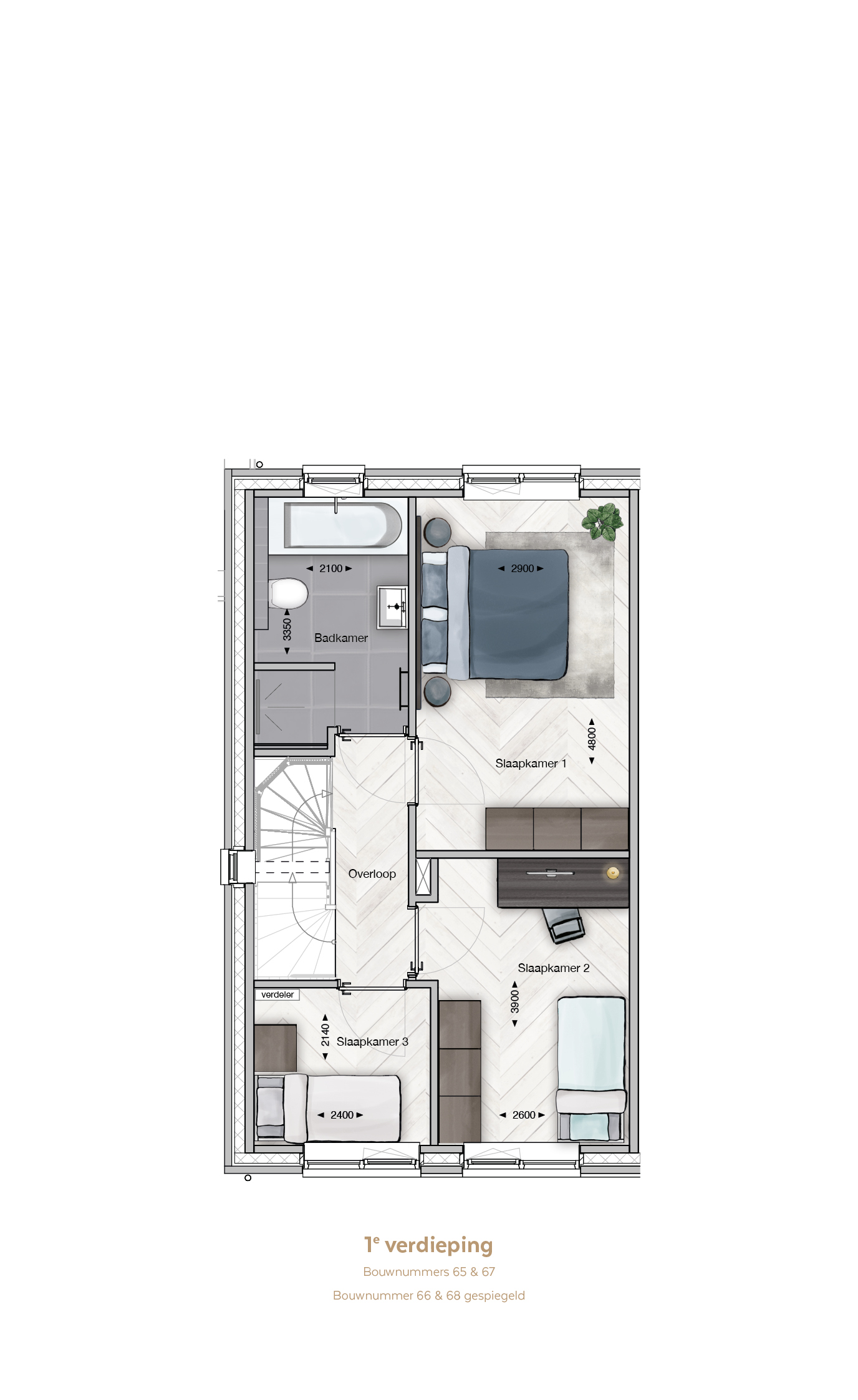 • Bouwnummer 66, 67 en 68 standaard voorzien van een aangebouwde berging.