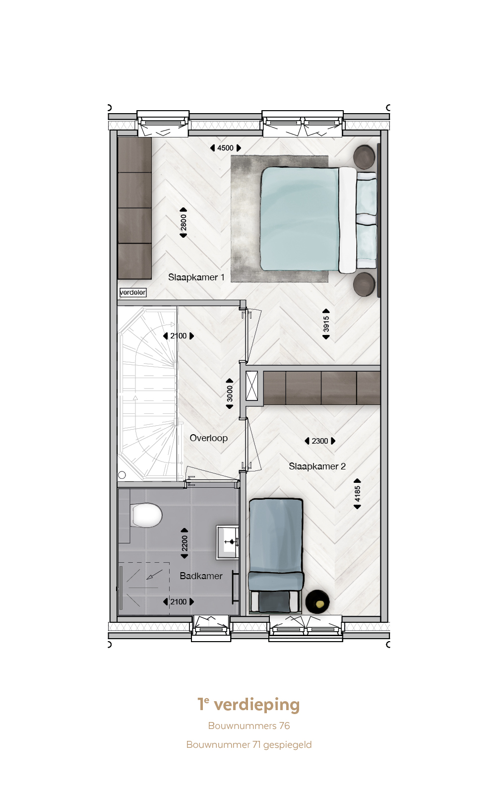• Divers gevelbeeld door variatie in raampartijen op de verdieping.