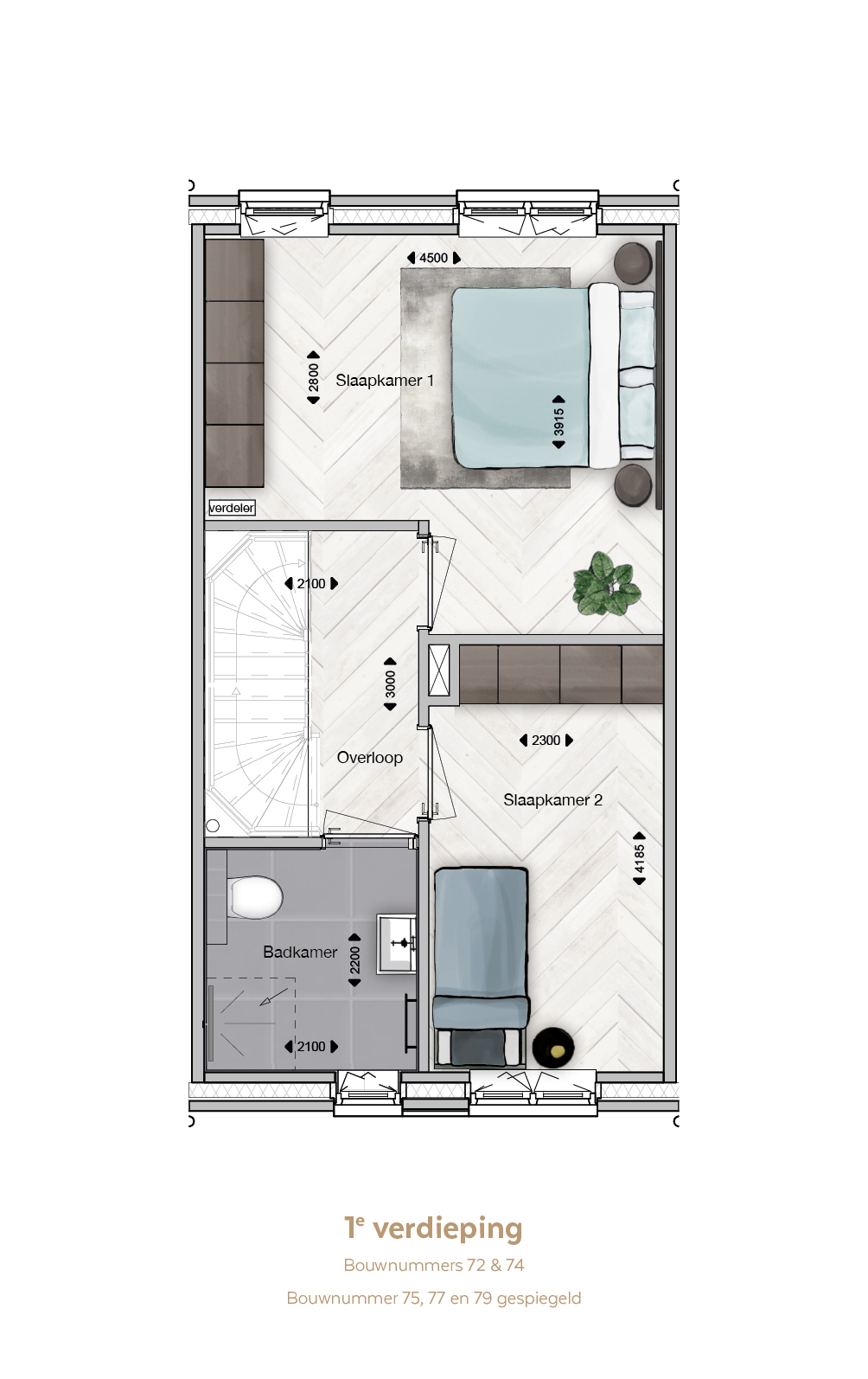 • Divers gevelbeeld door variatie in raampartijen op de verdieping.