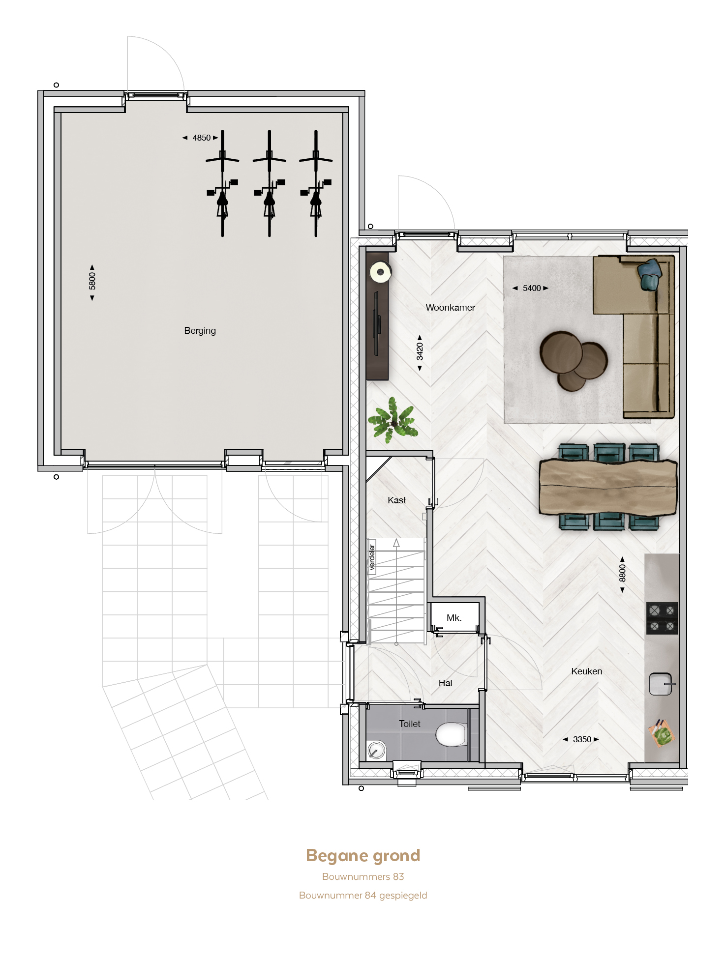• Standaard voorzien van een brede aangebouwde berging met extra loopdeur.