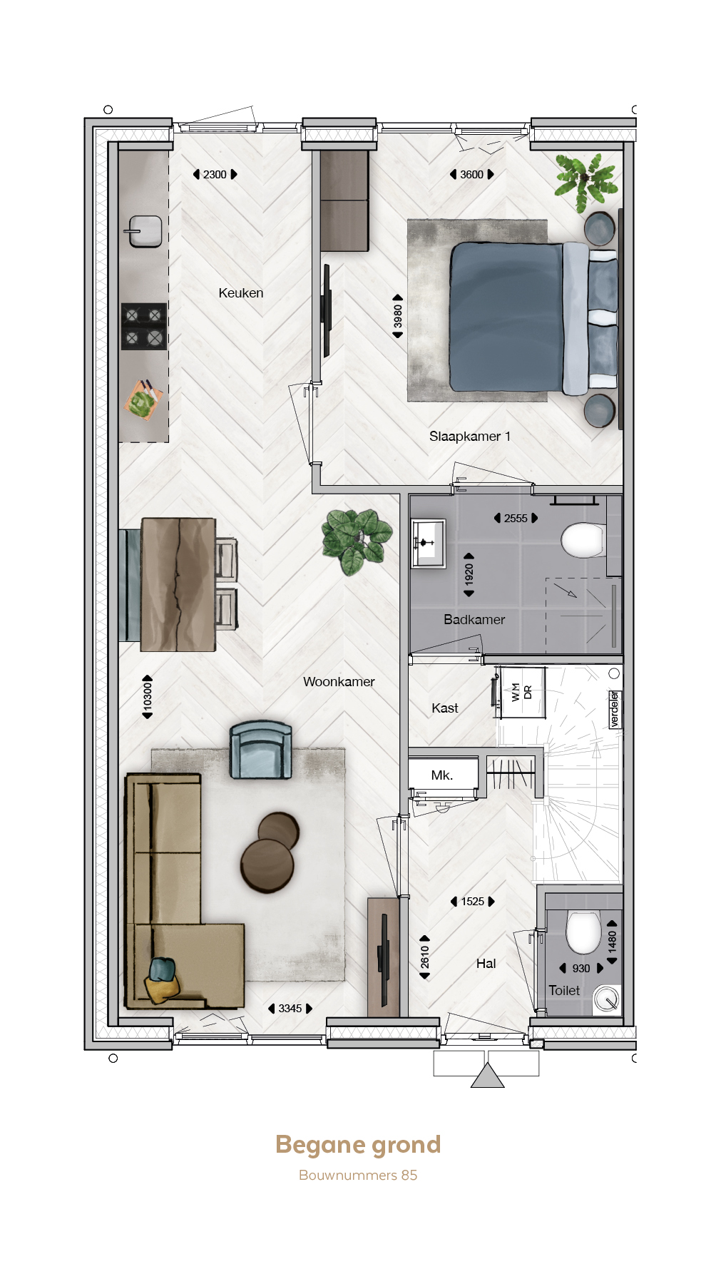 Deze levensloopbestendige woningen hebben een fraaie uitstraling door o.a. de toepassing van grote raampartijen, accenten in het metselwerk en een hoogwaardige gevelsteen. Met alle voorzieningen op de begane grond bent u gegarandeerd van optimaal wooncomfort en een toekomstbestendige woning.