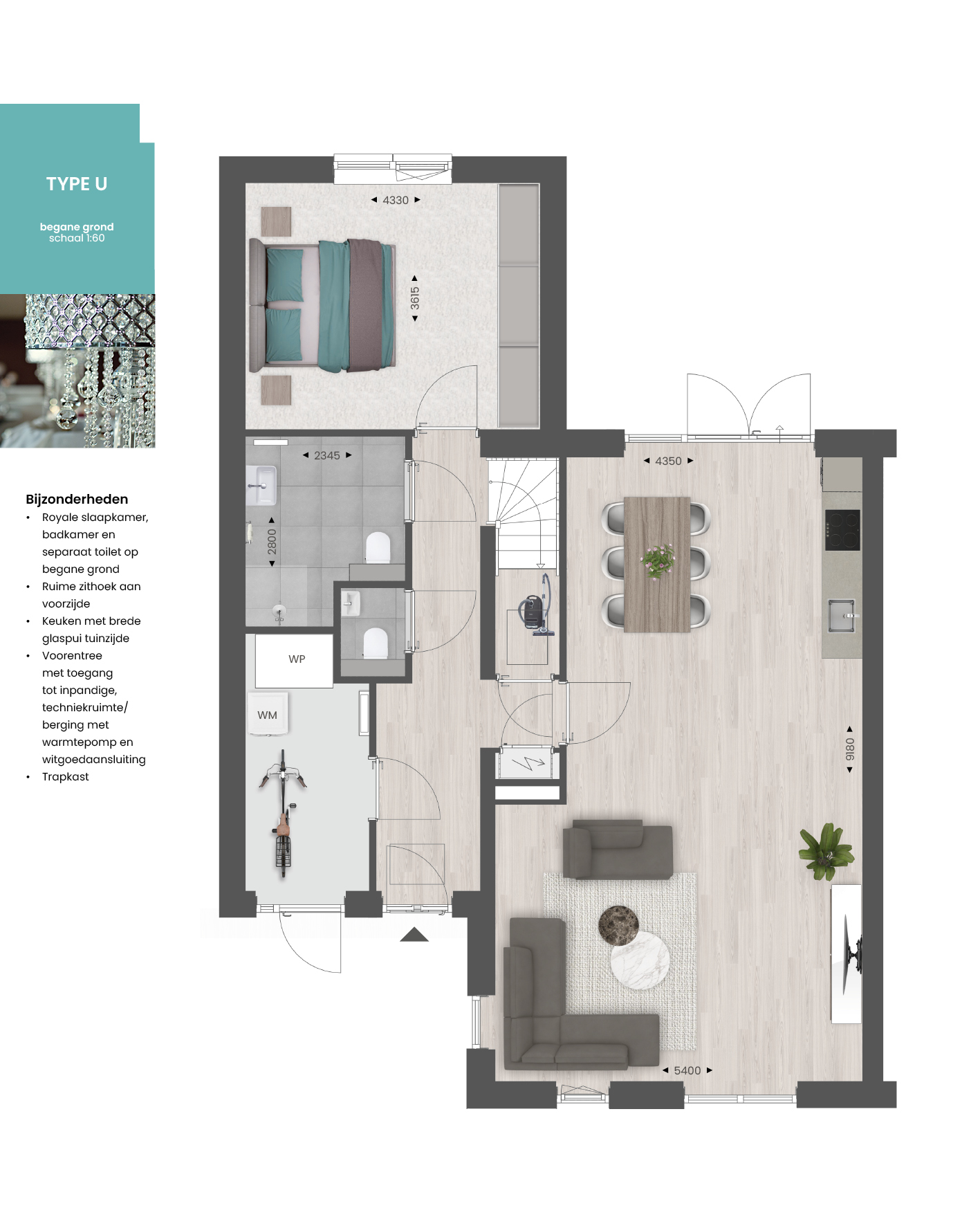 • Slaap- en badkamer op de begane grond