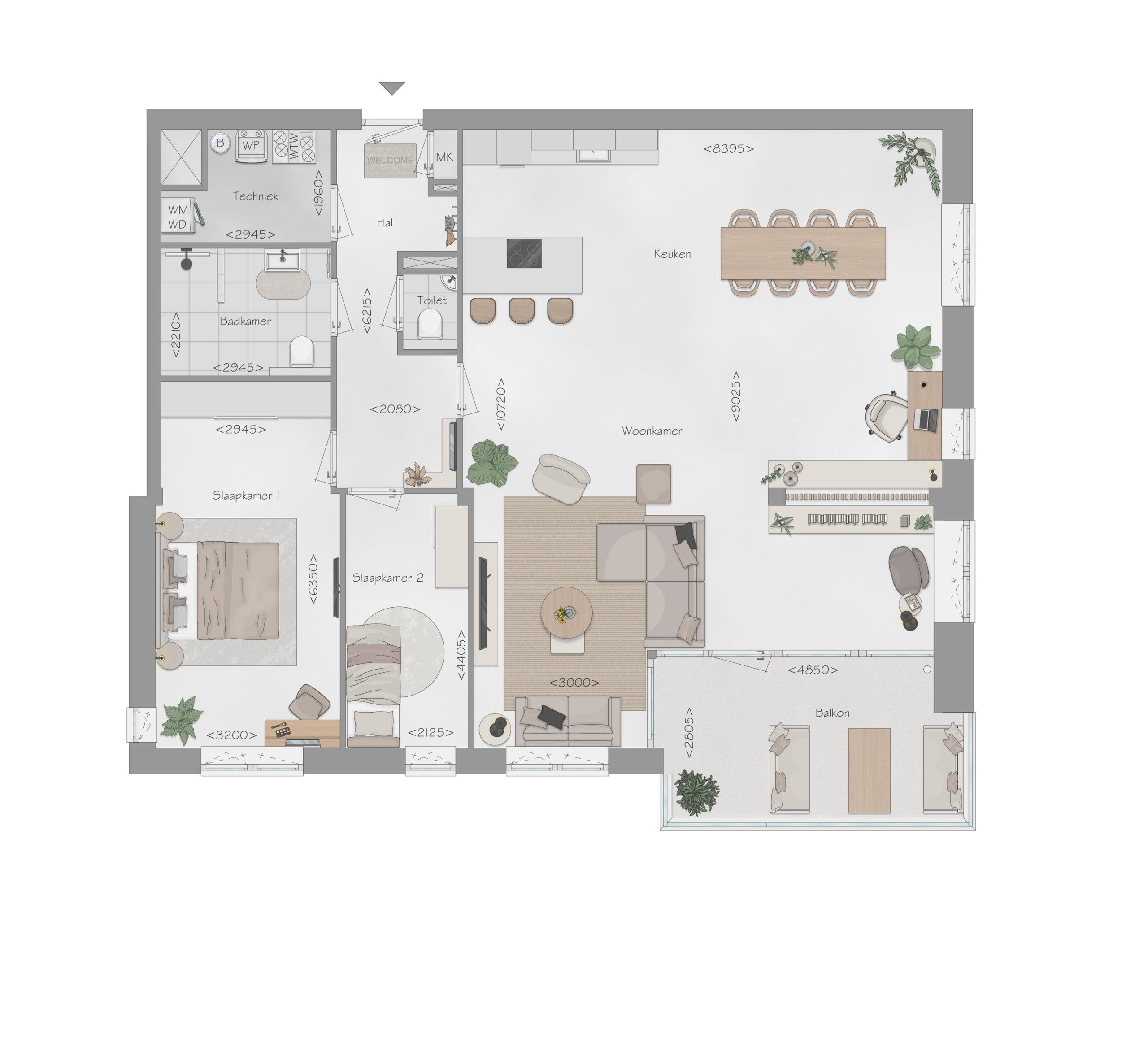 • 2 slaapkamers