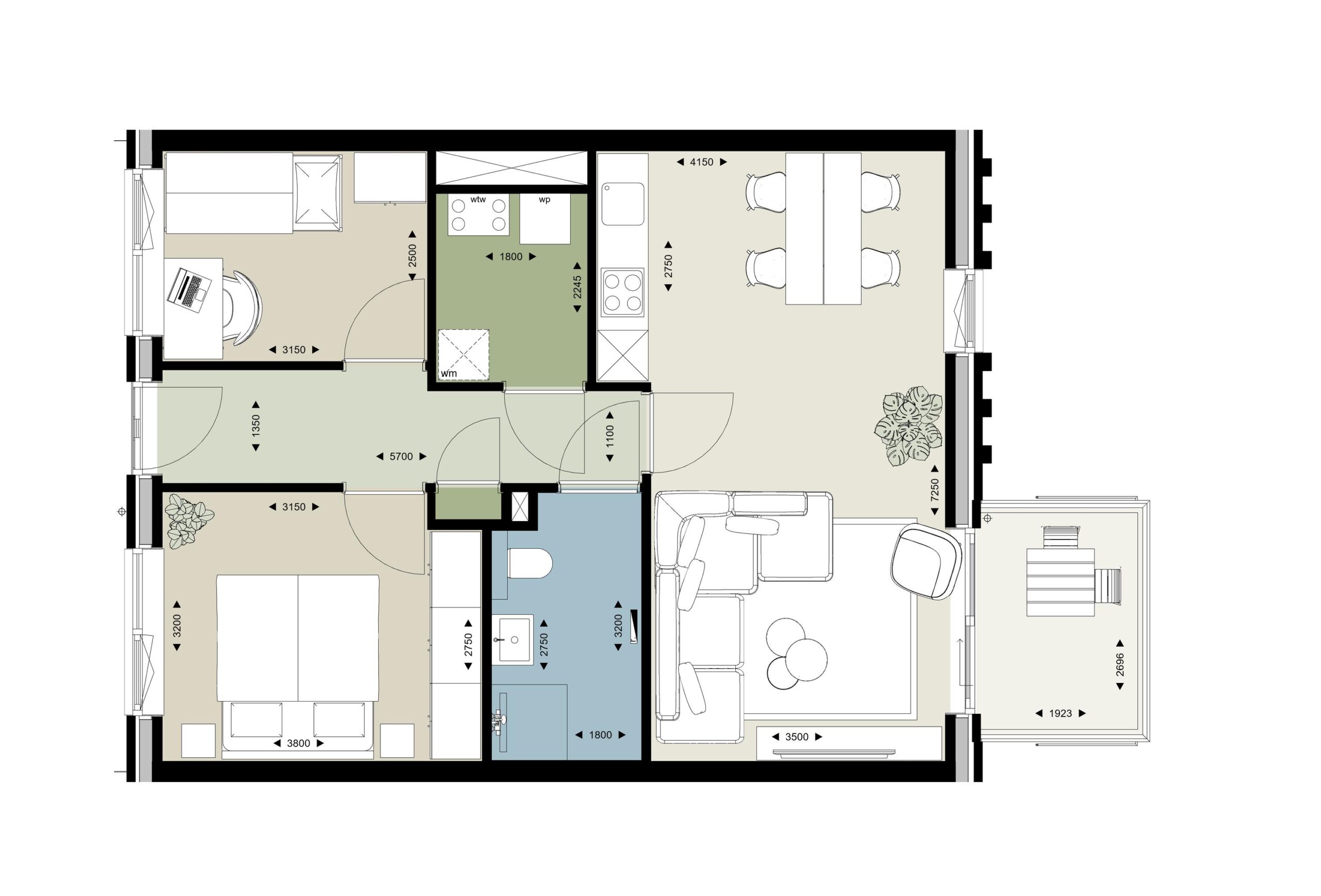 •Twee slaapkamers