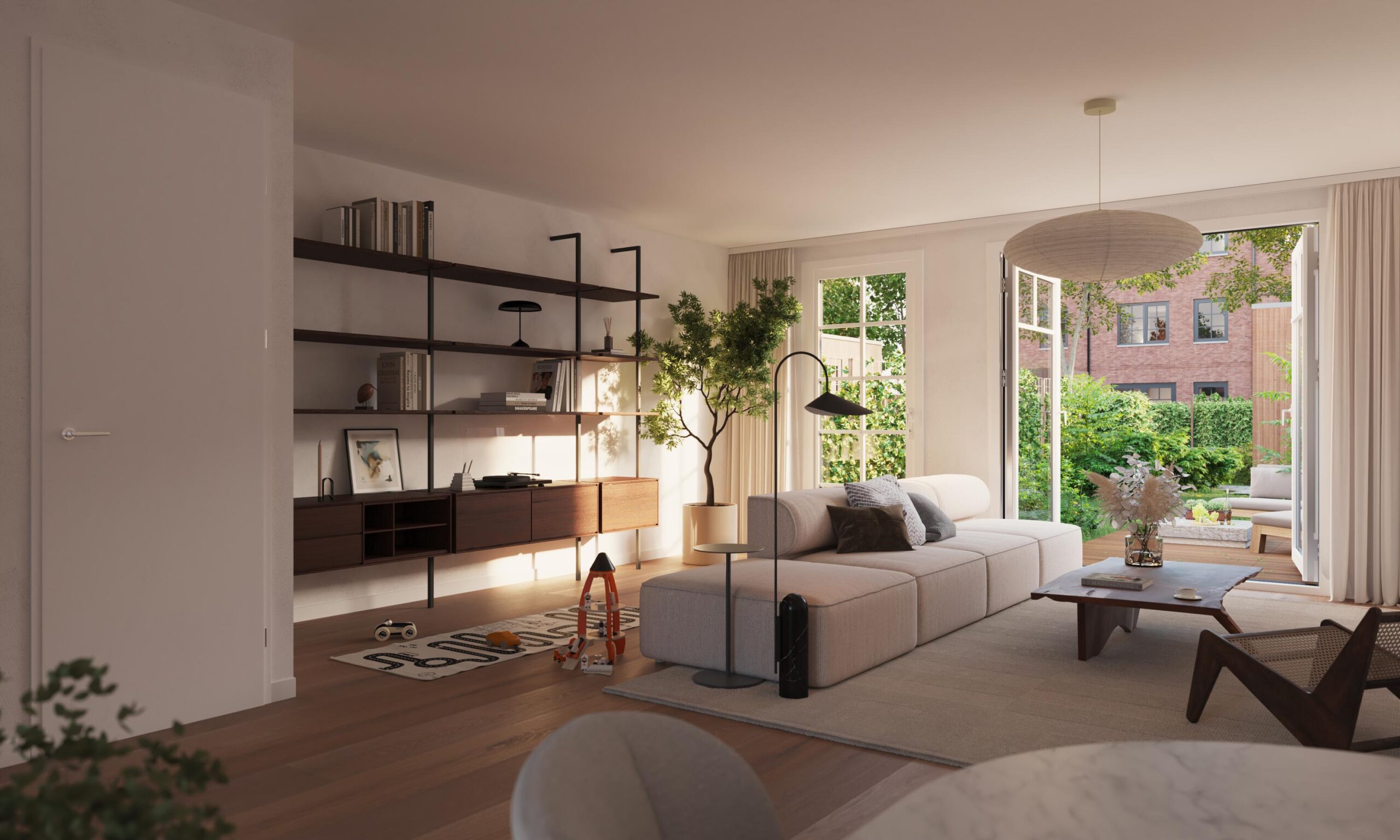 Fijne extra ruime tussenwoning, statig en robuust, standaard met aanbouw en openslaande tuindeuren naar de eigen stadstuin gelegen op het noorden. Aan de achterzijde grenzend aan een groen collectief binnenhof dat je deelt met je buren. Alle woningen hebben drie lagen en zijn voorzien van vijf slaapkamers, dus ruimte genoeg voor iedereen.