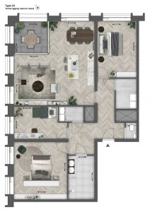 De Bankier biedt een unieke plek midden in het culinaire en culturele hart van Tilburg. In deze ruime appartementen van circa 126 m² kun je er zeer aangenaam genieten van het leven. Deze appartementen op de 16e tot en met 20e verdieping zijn chic en elegant. Met drie slaapkamers, een heerlijke buitenruimte van 8 of 18 m² en de stad aan je voeten is dit appartement het toonbeeld van comfort.