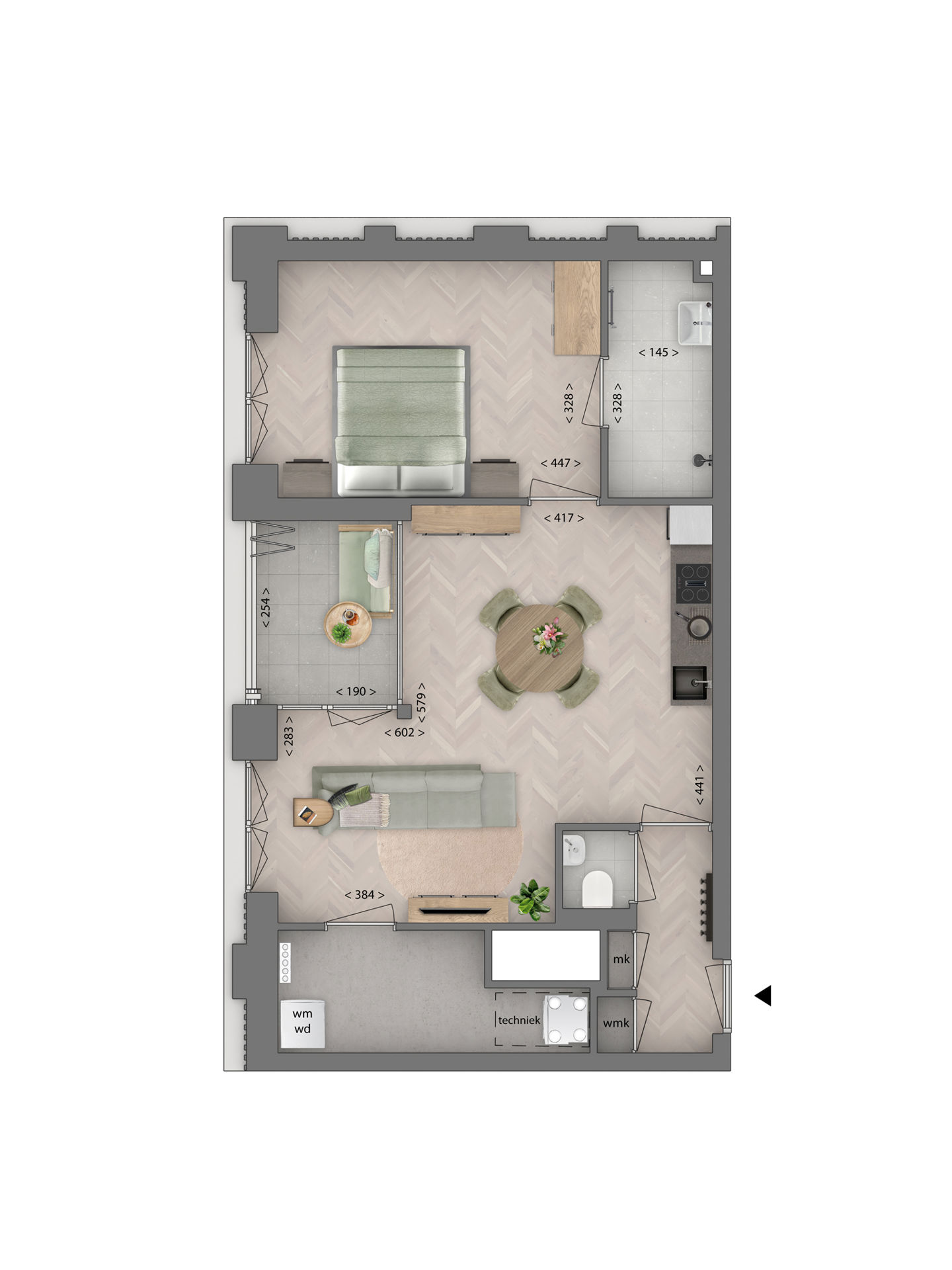 De open woonkamer en keuken voelen ruim en overzichtelijk aan met grote ramen voor een fijne lichtinval. De keuken is compleet en helemaal klaar voor gebruik, dus je kunt meteen los met je favoriete gerechten, of een borrel geven om je nieuwe woning te vieren. Via de openslaande deur stap je de loggia op: jouw beschutte buitenruimte met uitzicht over de stad. Hier geniet jij lekker van je ochtendkoffietje en de frisse lucht. In de fijne slaapkamer is er ruimte voor een comfortabel bed en een kledingkast en de ochtend start je in jouw moderne badkamer met inloopdouche en wastafel. Fijn: het toilet is apart! Voor de wasmachine, droger en andere spullen is er genoeg ruimte in de technische berging. Of je nu wilt ontspannen, werken of gewoon genieten: hier is het heerlijk thuiskomen!