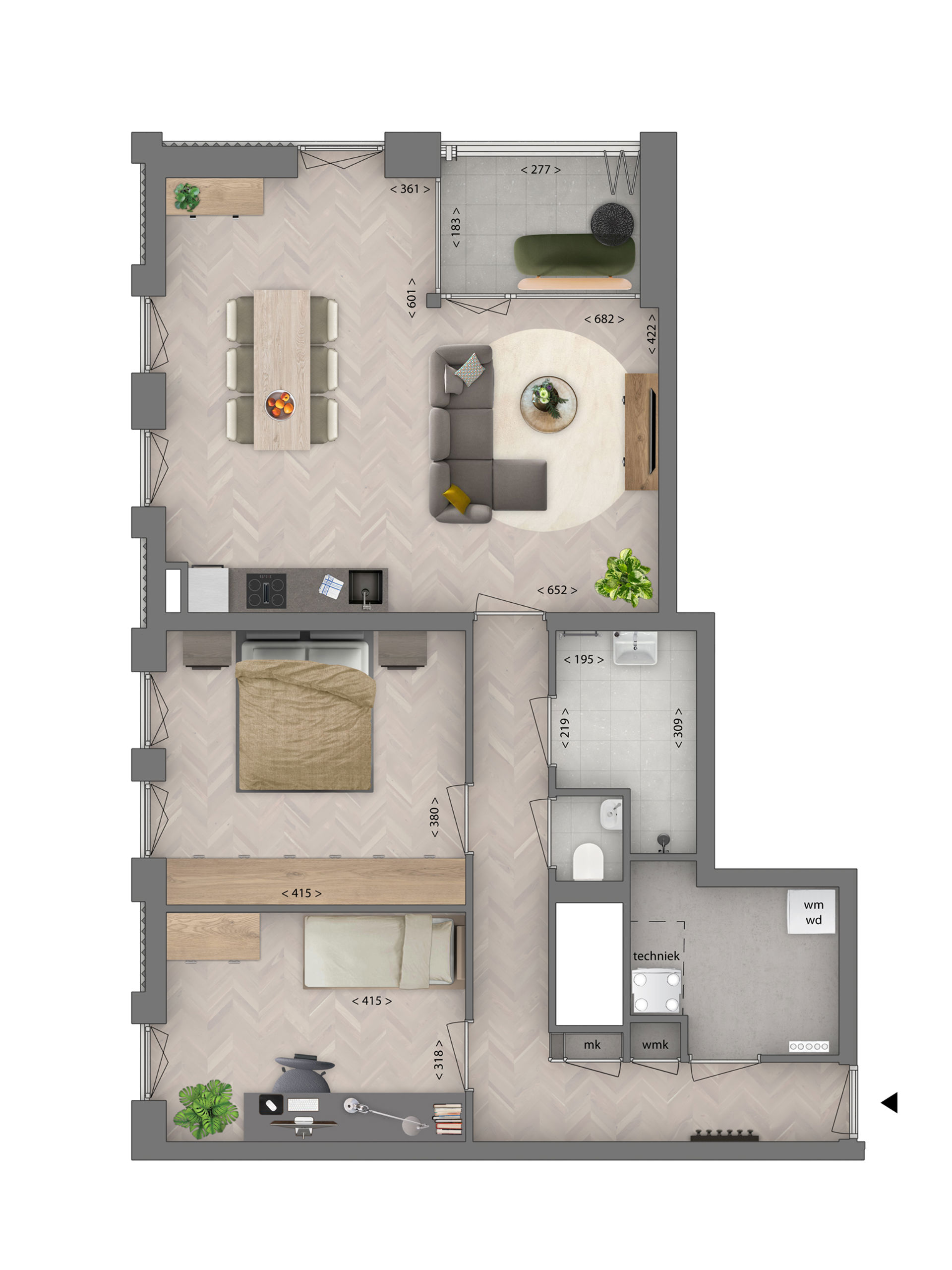 De open woonkamer en keuken vormen samen een lichte, royale leefruimte waar je volop kunt koken, relaxen of vrienden uitnodigen. De keuken is compleet ingericht, dus je kunt meteen los met je favoriete recepten. Via de openslaande deur loop je zo de zonnige loggia op: jouw beschutte buitenplek in de zon, met een fantastisch uitzicht over Tilburg. De perfecte plek om de dag te beginnen met koffie of af te sluiten met een borrel. Zie je het al voor je? Met 2 slaapkamers heb je alle vrijheid: een ruime master bedroom en een tweede kamer voor een thuiskantoor, logeerkamer of walk-in closet. De badkamer is modern met een inloopdouche en wastafel, het toilet is apart, wel zo fijn! In de technische berging is plek voor je wasmachine, droger en andere spullen. Je hoeft alleen nog maar te verhuizen!