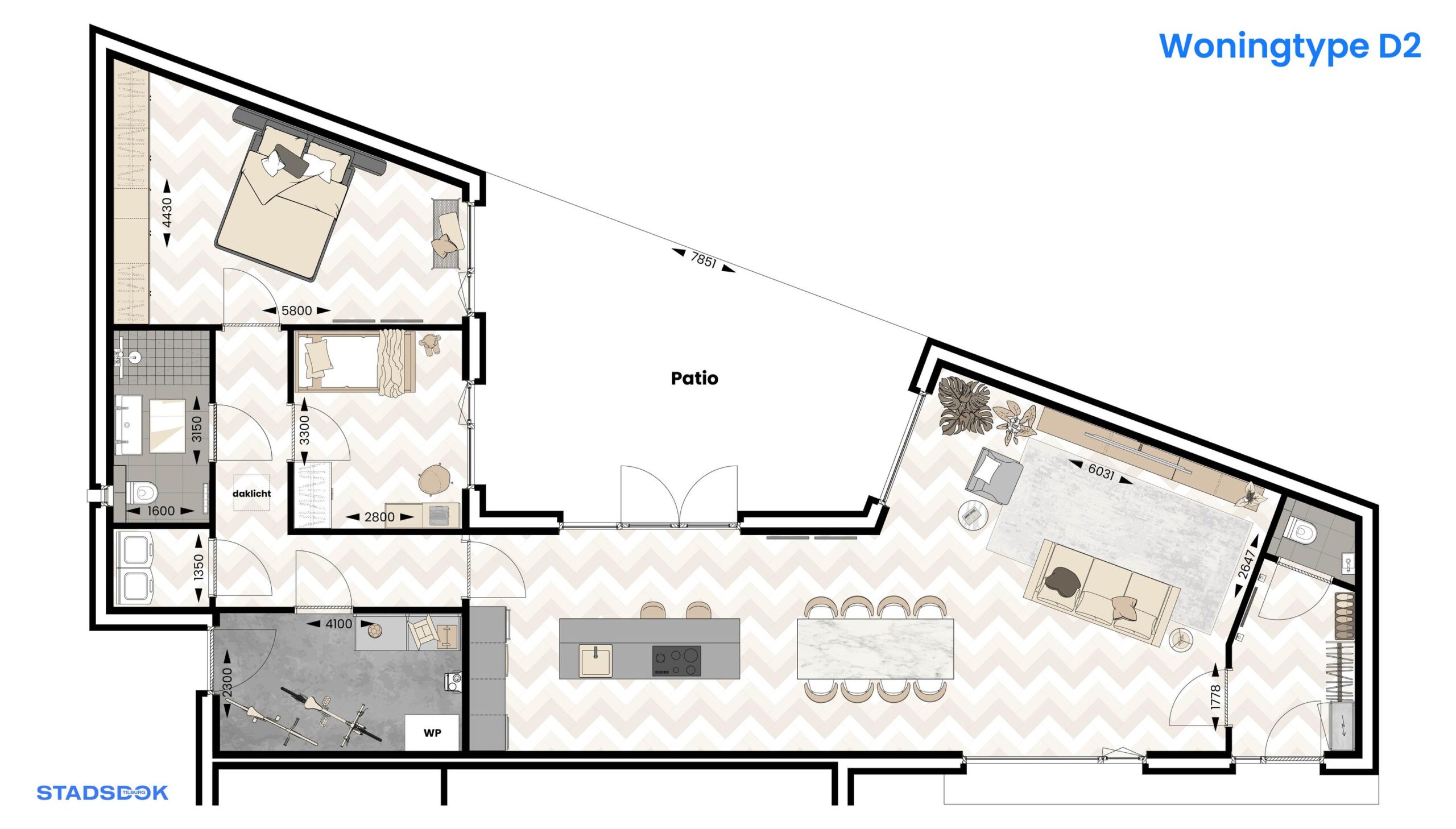 Het hart van de woning wordt gevormd door de lichte, beschutte patio – een sfeervolle binnentuin die zorgt voor rust, privacy en een directe verbinding tussen binnen en buiten. Hier geniet je het hele jaar van een plek vrij van inkijk en wind.