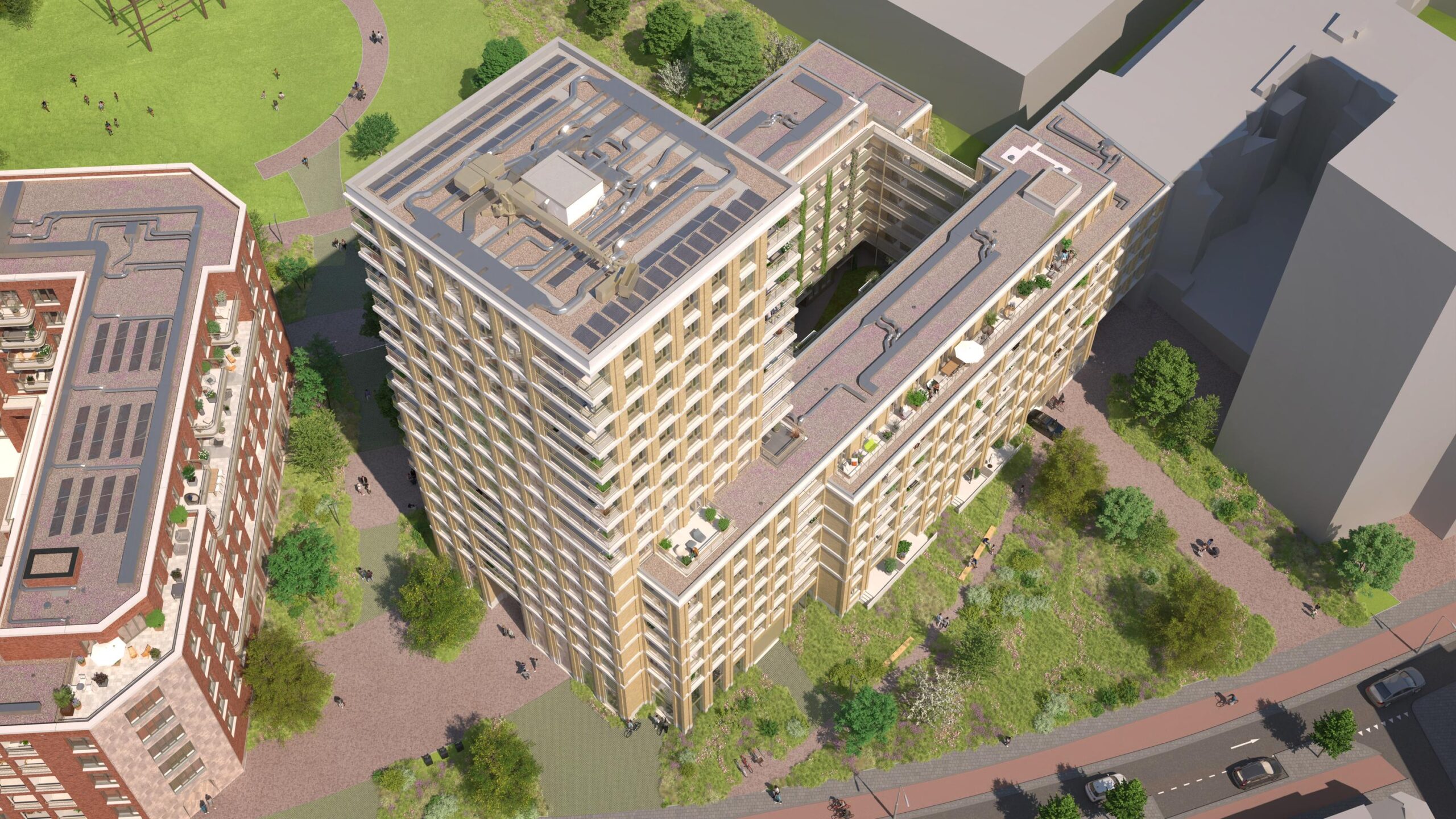 Een plek tussen rust en reuring, waar bewoners, buren en voorbijgangers samen genieten van de ruimte en het nieuwe groen in de stadsweide. Er komen 364 koop- en huurappartementen, verdeeld over twee woongebouwen: De Weidewachter en De Hoogwachter.