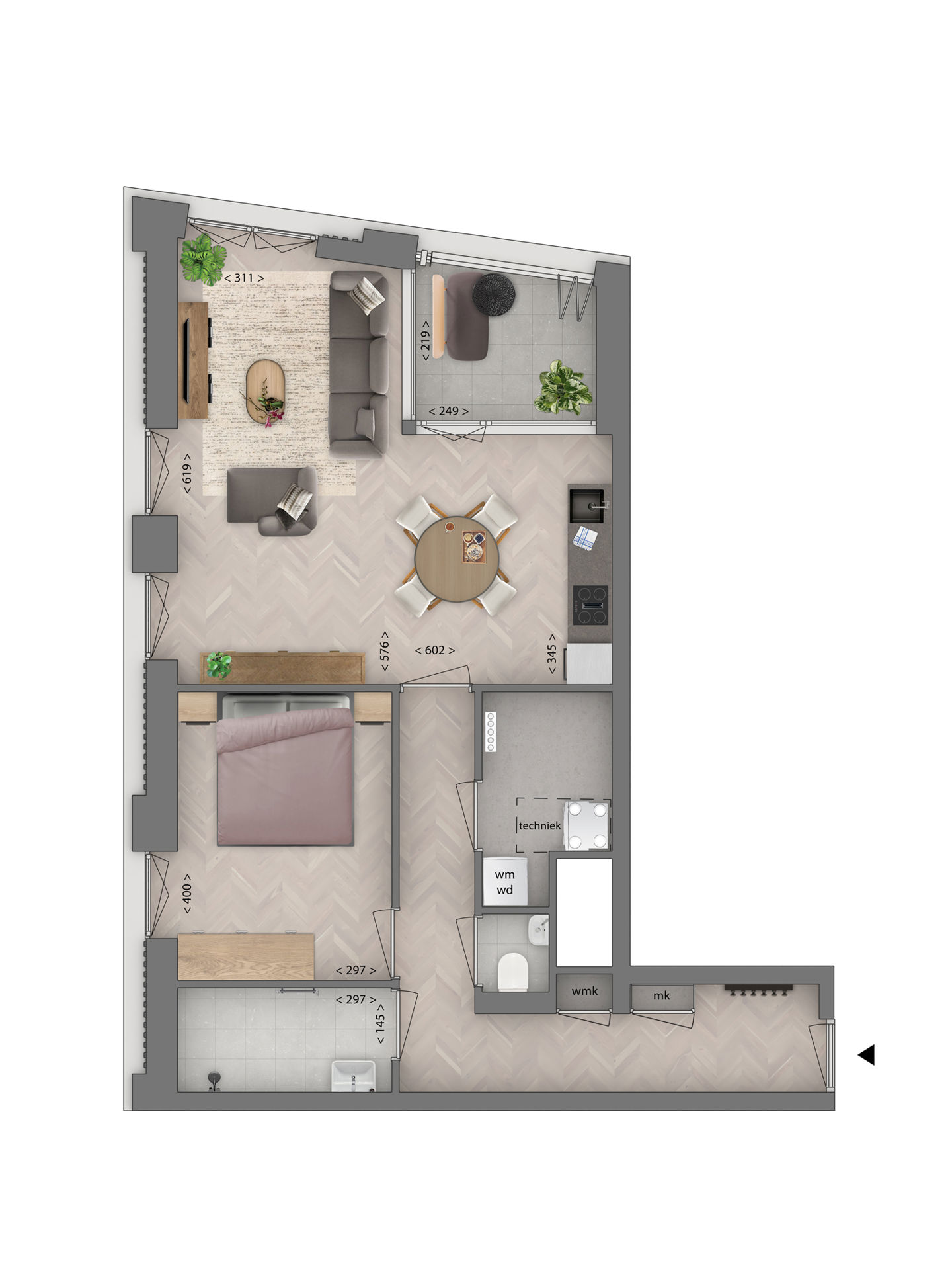 De open woonkamer en keuken voelen ruim en overzichtelijk aan met grote ramen voor een fijne lichtinval. De keuken is compleet en helemaal klaar voor gebruik, dus je kunt meteen los met je favoriete gerechten, of een borrel geven om je nieuwe woning te vieren. Via de openslaande deur stap je de loggia op: jouw beschutte buitenruimte met uitzicht over de stad. Hier geniet jij lekker van je ochtendkoffietje en de frisse lucht. In de fijne slaapkamer is er ruimte voor een comfortabel bed en een kledingkast en de ochtend start je in jouw moderne badkamer met inloopdouche en wastafel. Fijn: het toilet is apart! Voor de wasmachine, droger en andere spullen is er genoeg ruimte in de technische berging. Of je nu wilt ontspannen, werken of gewoon genieten: hier is het heerlijk thuiskomen!