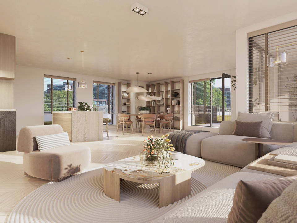 De ruime woonkamer met open keuken is licht en overzichtelijk ingedeeld, met genoeg ruimte voor een grote eettafel en een gezellige zithoek. Door de vele ramen is deze ruimte heerlijk licht! De keuken is compleet en helemaal klaar voor gebruik: lekker kokkerellen, dineren en daarna neerploffen in de zithoek! Via de openslaande deur stap je zo op de zonnige loggia, jouw beschutte spot voor een koffie in de zon of een ontspannen lunch. Liever wat meer ruimte? Dan stap je via de andere zijde je eigen daktuin op. Een unieke buitenruimte met volop groen om je heen. De 3 slaapkamers zijn lekker ruim: thuiswerkplek, logeerkamer, het kan allemaal. Verder is er nog een moderne badkamer met douche, toilet en wastafel, een 2e separaat toilet en een technische berging. Volop gemak!