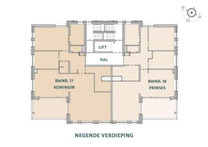 Ligging in gebouw op de 1e t/m 9e verdieping