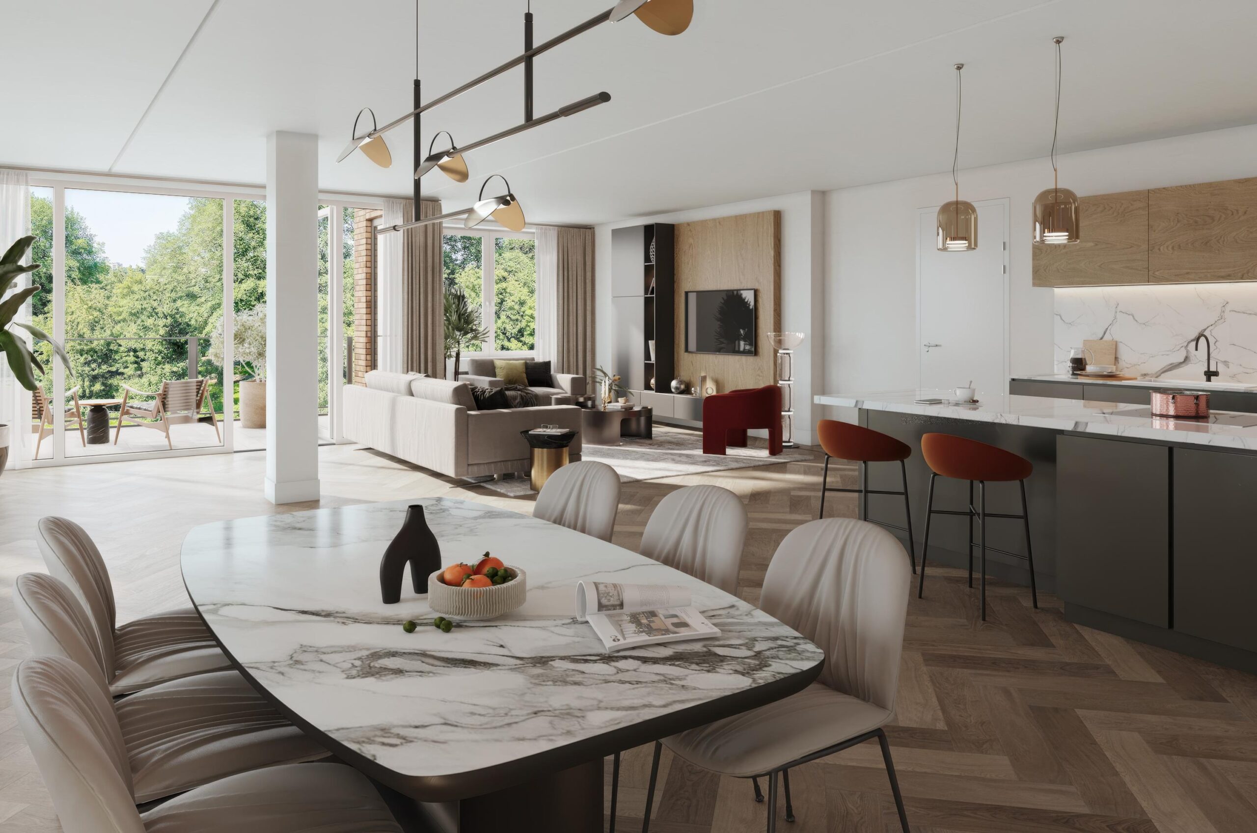 • Woonkamer met open keuken met een oppervlakte van ca. 80 m²