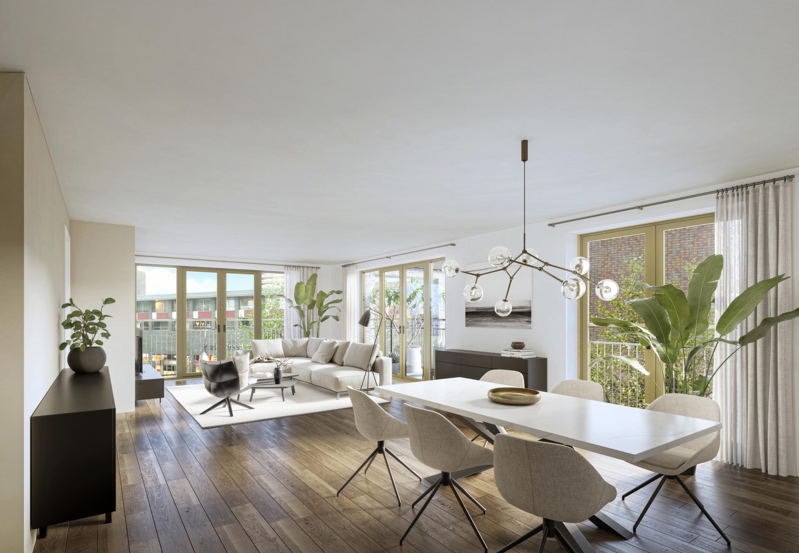 Met een woonoppervlakte van circa 109 m² en een ruime L-vormige woonkamer met open keuken van circa 57 m² biedt dit appartement volop ruimte om comfortabel te wonen. De keuken is volledig naar eigen wens samen te stellen met een keukencheque ter waarde van €2.500,-. Daarnaast beschikt het appartement over twee slaapkamers van circa 15 m² en 8 m², een volledig uitgeruste badkamer en een separaat toilet.