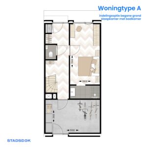 Aan de voorzijde van de woning bevindt zich op de begane grond een multifunctionele ruimte met uitzicht op de intieme, groene woonstraatjes. Hoe je deze ruimte gaat gebruiken is aan jou. Bekijk de indelingsopties en ontdek welke bij jou past.