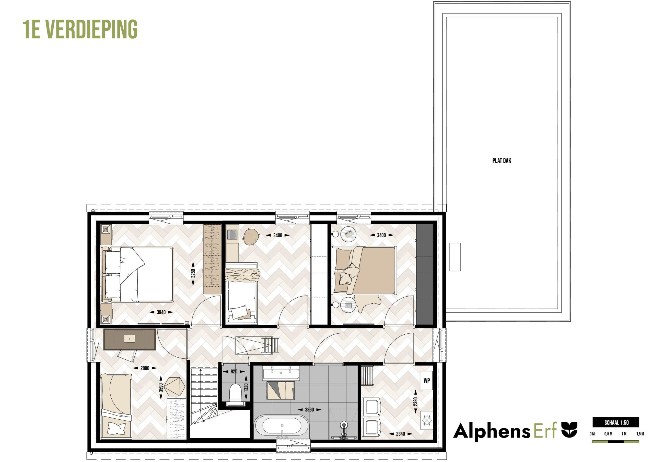 De woning beschikt standaard over vier ruime slaapkamers, met de mogelijkheid tot een vijfde slaapkamer. Hierdoor is de woning geschikt voor grotere gezinnen of voor wie extra ruimte zoekt voor werken, logeren of hobby’s. De woning wordt energiezuinig gerealiseerd, wat zorgt voor een comfortabel binnenklimaat en beheersbare energielasten.