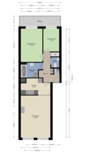 Ca. 2.95x4.50 m. met een schuifpui naar een balkon ca. 1.40x5.55 m.