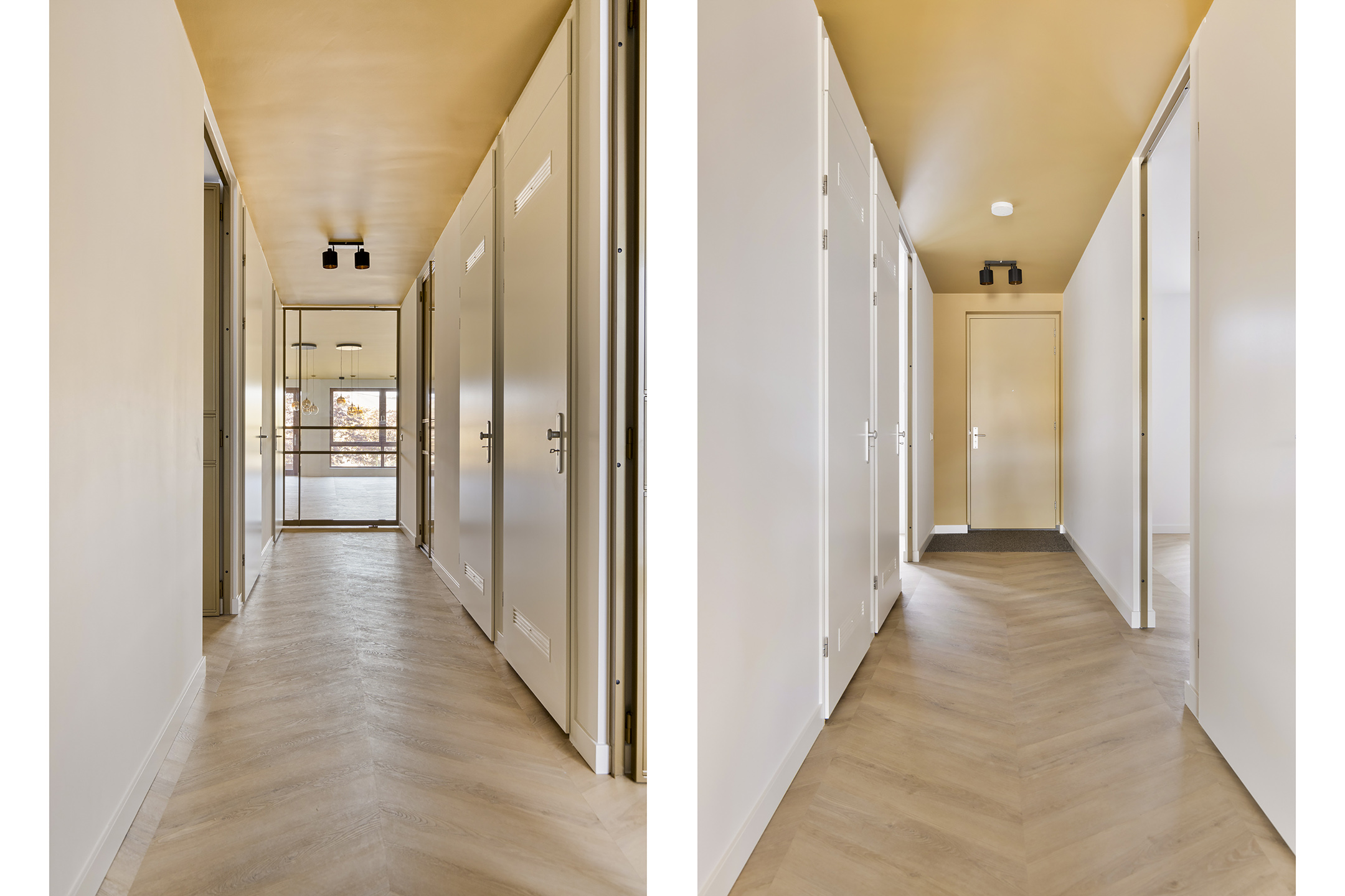 Bij binnenkomst treedt u binnen in de ruime entree/hal die u toegang verleent tot alle vertrekken van het appartement. Hier vindt u tevens de meterkast en de opstelplaats voor de unit van de stadsverwarming. Het appartement is volledig voorzien van comfortabele vloerverwarming, wat zorgt voor een fijn binnenklimaat en een gelijkmatige warmteverdeling in alle ruimtes. De vloer is met uitzondering van het sanitair voorzien van een fraaie PVC vloerafwerking.