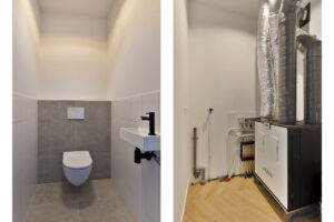 In de technische ruimte (ca. 2 m2) vindt u de opstelplaats voor de mechanische (balans)ventilatie, de verdeler van de vloerverwarming en de aansluitingen voor de wasapparatuur.