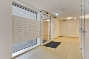 Centrale entree met brievenbussen, video-intercom en toegang tot het trappenhuis en de liftinstallatie. De privé parkeerplaats met eigen laadpaal, bevindt zich in de parkeerkelder onder het gebouw. Tevens vind je daar je eigen berging; ideaal voor bijvoorbeeld fietsen of seizoensspullen.
