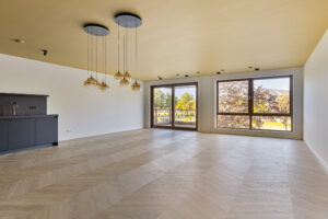 De riante living (ca. 66 m²) kent een prettige lichtinval dankzij de grote raampartijen die mooi uitzicht geven over de stad en straks "de Nieuwe Mark". De strakke afwerking draagt bij aan een rustige en moderne uitstraling. Vanuit de woonkamer heeft u direct toegang tot het gunstig op het westen gesitueerde balkon (ca. 8 m² ), een fijne buitenruimte waar u in alle rust kunt ontspannen. De luxe L-vormige keukeninrichting is compleet afgewerkt met hoogwaardige inbouwapparatuur.