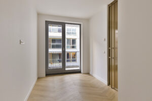 De tweede slaapkamer (ca. 9 m²) is veelzijdig te gebruiken. Ook deze kamer beschikt over een grote raampartij voor natuurlijke lichtinval.