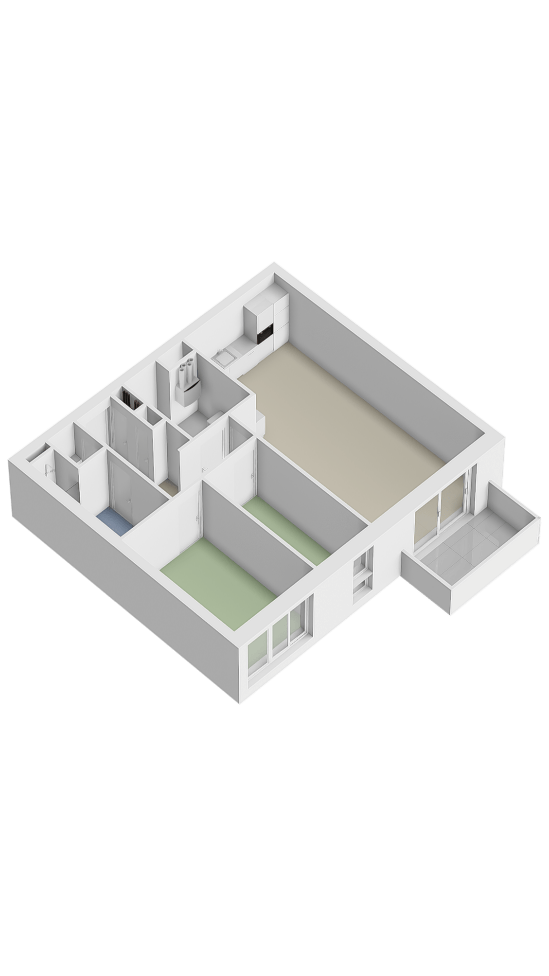 - Het gehele appartement is voorzien van vloerverwarming als hoofdverwarming met individueel regelbare thermostaten in de living en de twee slaapkamers.