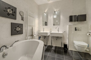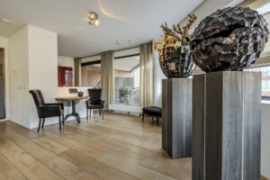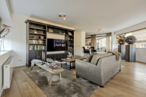 - Het appartement is met uitzondering van de slaapkamers en het sanitair voorzien van een fraaie massief Eiken houten vloer.