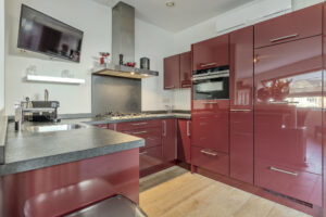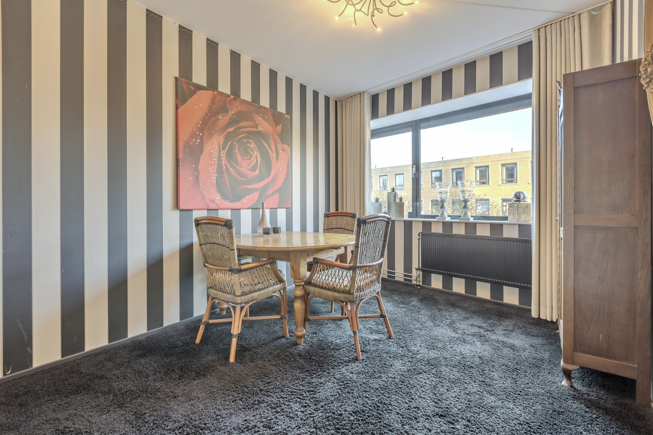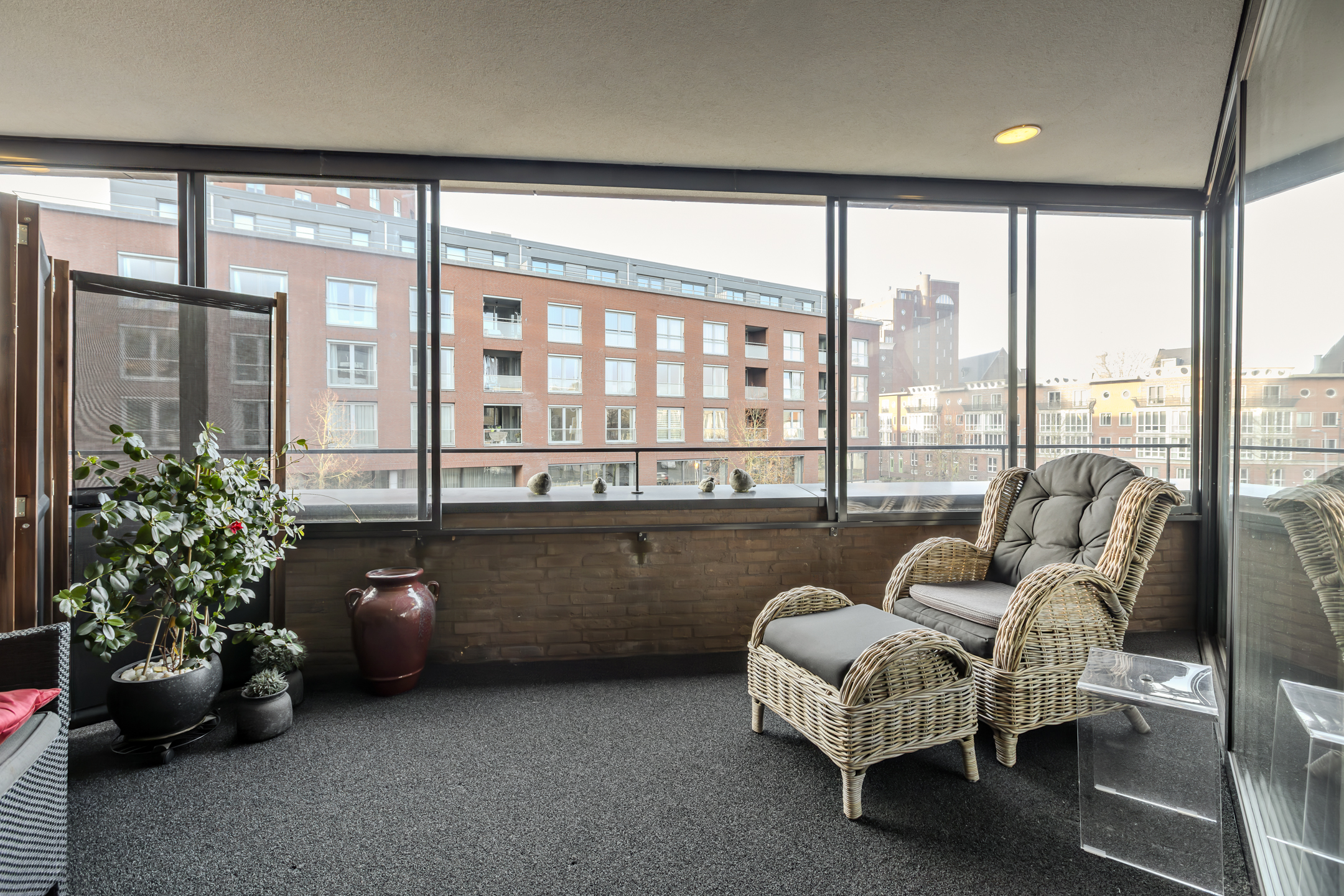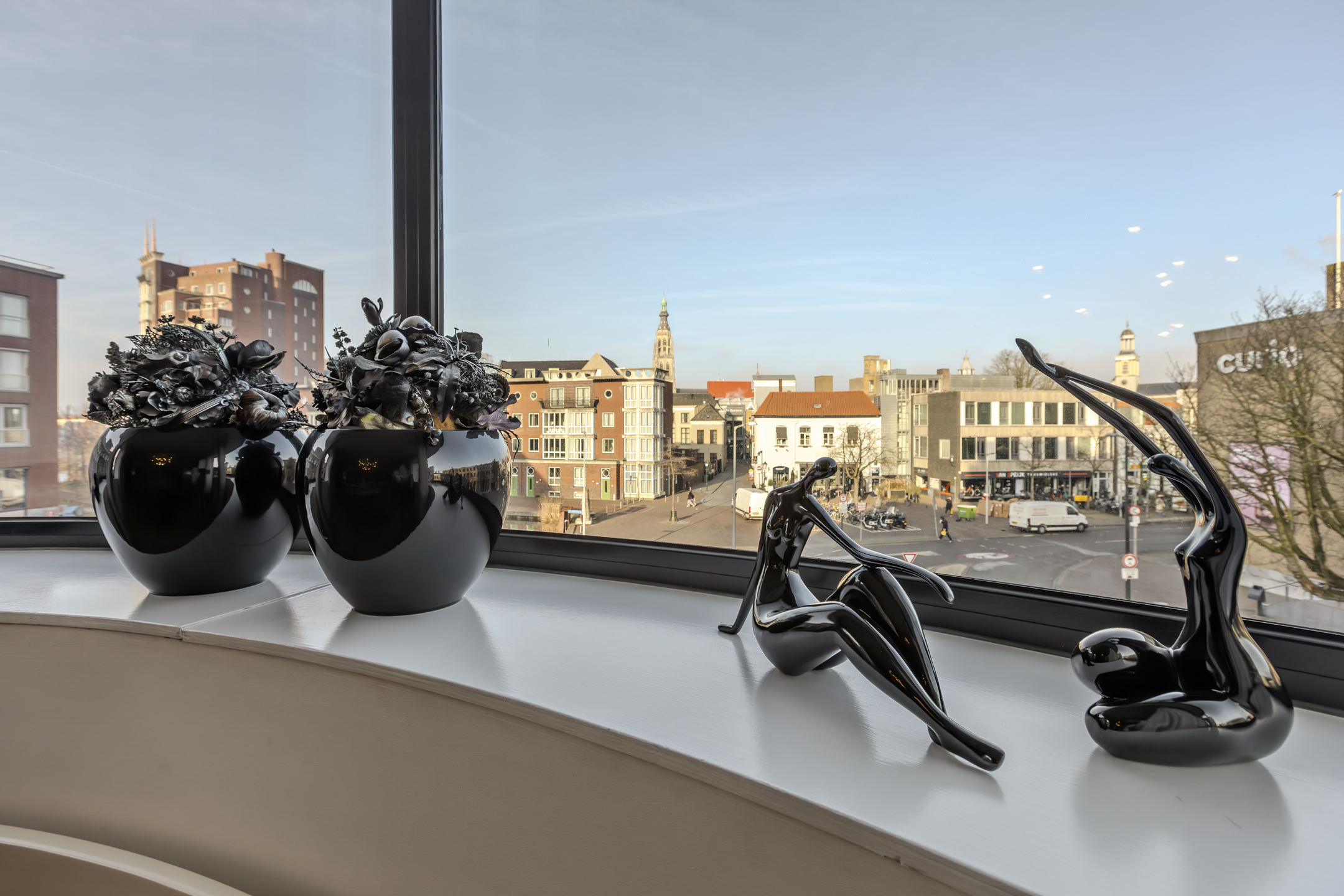 Riante living ca. (74 m²) met schuifpui naar de buitenruimte. Tevens beschikt de woonkamer over een fantastisch grote, ronde raampartij waardoor u een geweldig uitzicht heeft over de binnenstad. Semi-open keuken met U-vormige keukeninrichting voorzien van een hard stenen aanrechtblad en de volgende inbouwapparatuur: 5 pits gaskookplaat, recirculatie afzuigschouw, koelkast, combi oven/magnetron, vaatwasser en een quooker-kraan. De woonkamer/keuken is tevens voorzien van een airco.