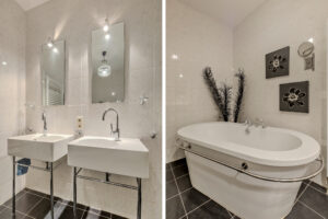 Royale hoofdslaapkamer (ca. 3.80x4.45 m.) voorzien van vaste kastenwand en toegang tot een luxe badkamer (ca. 2.90x2.60 m.) met royale inloopdouche, ligbad van het merk Philippe Starck, wandcloset voorzien van inbouw reservoir en twee wastafels; tweede slaapkamer (ca. 3.00x4.00 m.).
