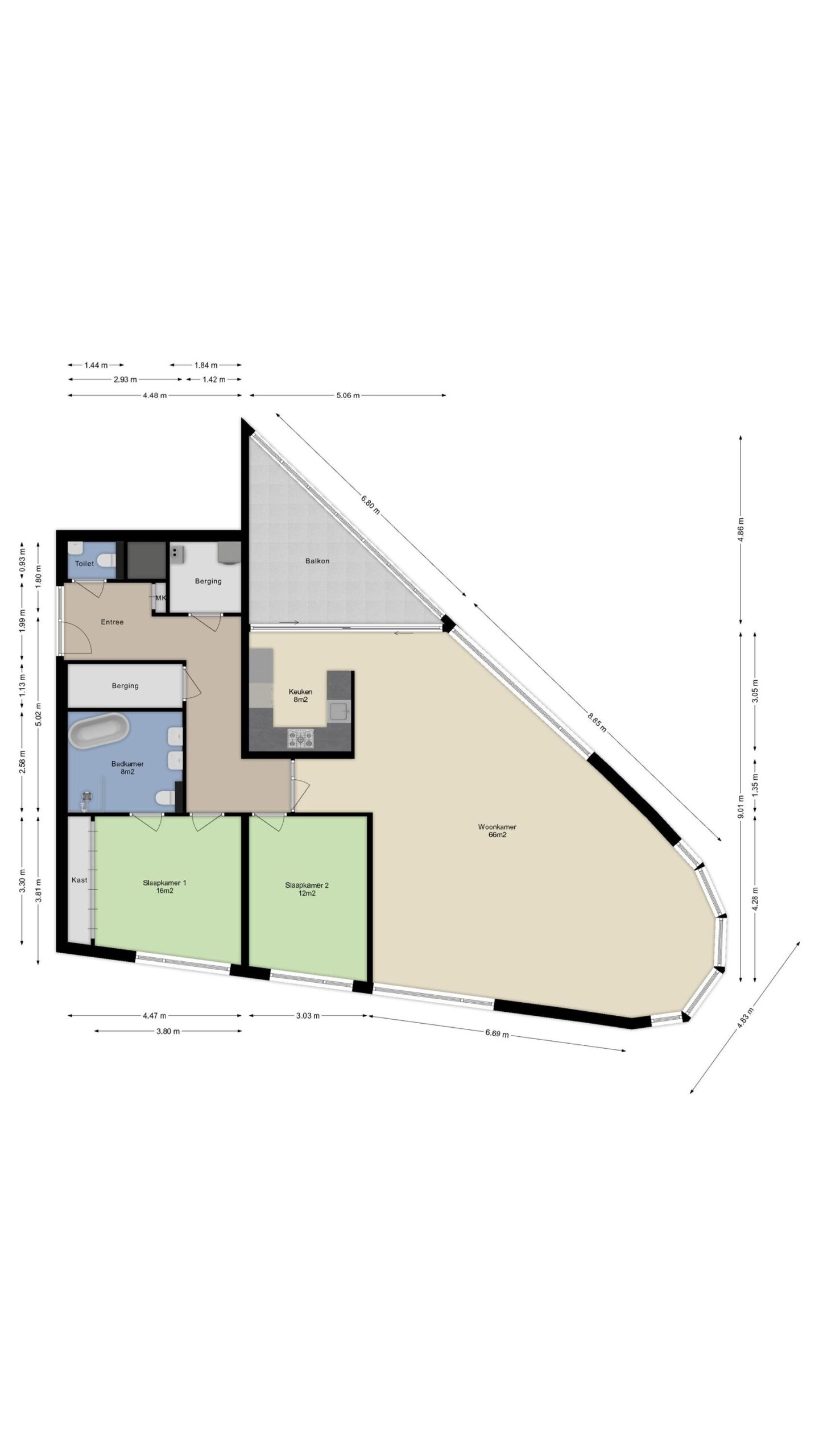 Royaal 3 kamer appartement gelegen op de tweede verdieping van het appartementencomplex DOK 64. Via een half ronde raampartij heeft men een fantastisch panorama uitzicht op "De Nieuwe Mark" en de Grote Kerk van Breda.