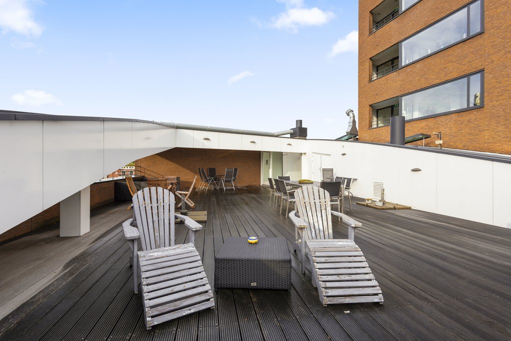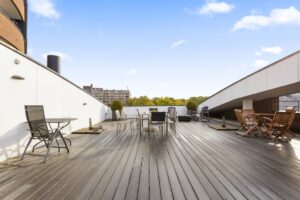 - Op de 4e verdieping bevindt zich, georiënteerd op het zuiden, een royaal dakterras (ca. 140 m²) aan de waterzijde voor gemeenschappelijk gebruik.