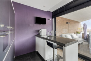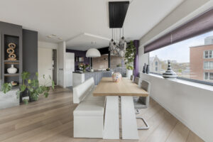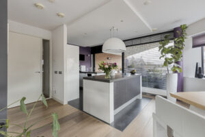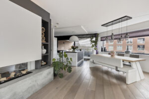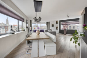 - Het appartement is met uitzondering van het sanitair en een deel van de keuken voorzien van een fraaie Grey-Wash Eiken vloer.