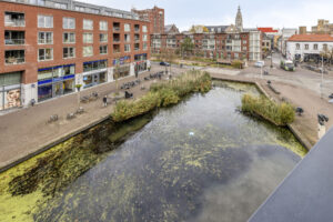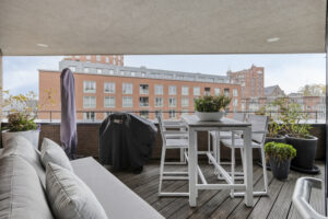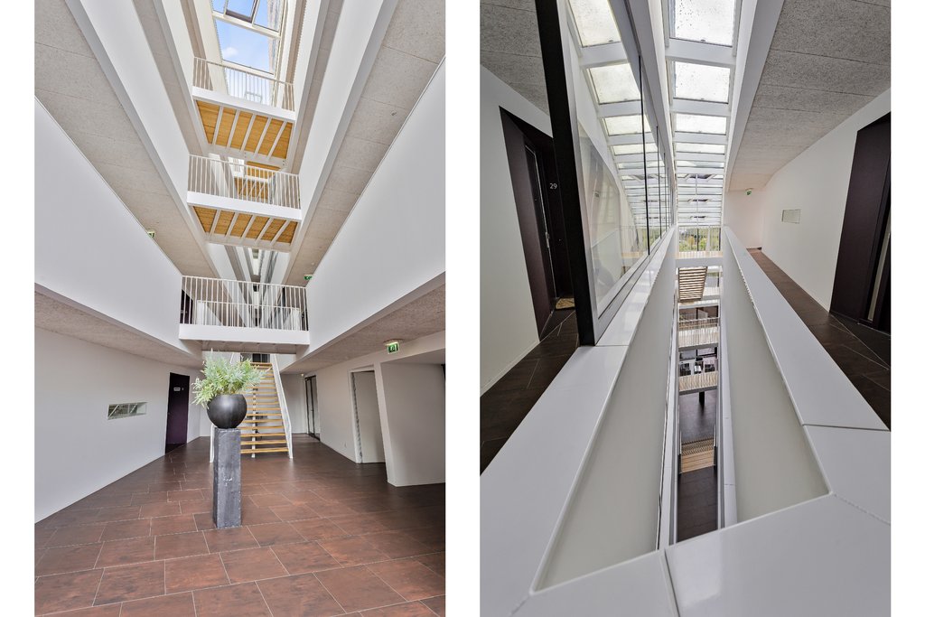 - Op de 4e verdieping bevindt zich, georiënteerd op het zuiden, een royaal dakterras (140m²) aan de waterzijde voor gemeenschappelijk gebruik.