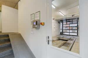Middels videofooninstallatie toegang tot centrale entree met liftinstallatie, brievenbussen en toegang tot trappenhuis, afgesloten overnameruimte parkeerstalling en gemeenschappelijke fietsenberging.